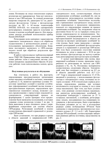 На основе представленных в работе результатов, можно считать, что за счет присутствия в резонаторе продольно ориентированного электрического зонда в области ωс = (0,5–0,7)ωо происходит локальное увеличение напряженности электрического СВЧ-поля, что определяет область линейной трансформации электромагнитной волны в косую ленгмюровскую с последующим ее распадом на новую косую ленгмюровскую и ионно-звуковую волны. Предполагаем, что ввиду симметрии системы и локальности области возбуждения НЧ-волны следует ожидать возможность возникновения в изучаемой структуре стоячей волны.