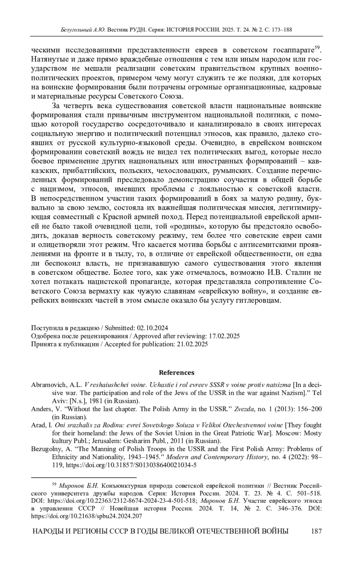 4. Безугольный А.Ю. Комплектование польских войск в СССР и Войска польского личным составом: проблемы этничности и гражданства (1943-1945 годы) // Новая и Новейшая история. 2022. № 4. C. 98-119. DOI: 10.31857/S013038640021034-5 EDN: QZVKSB
