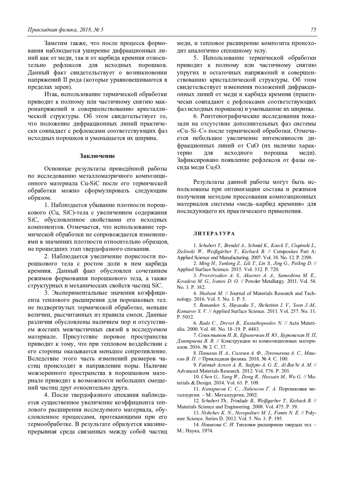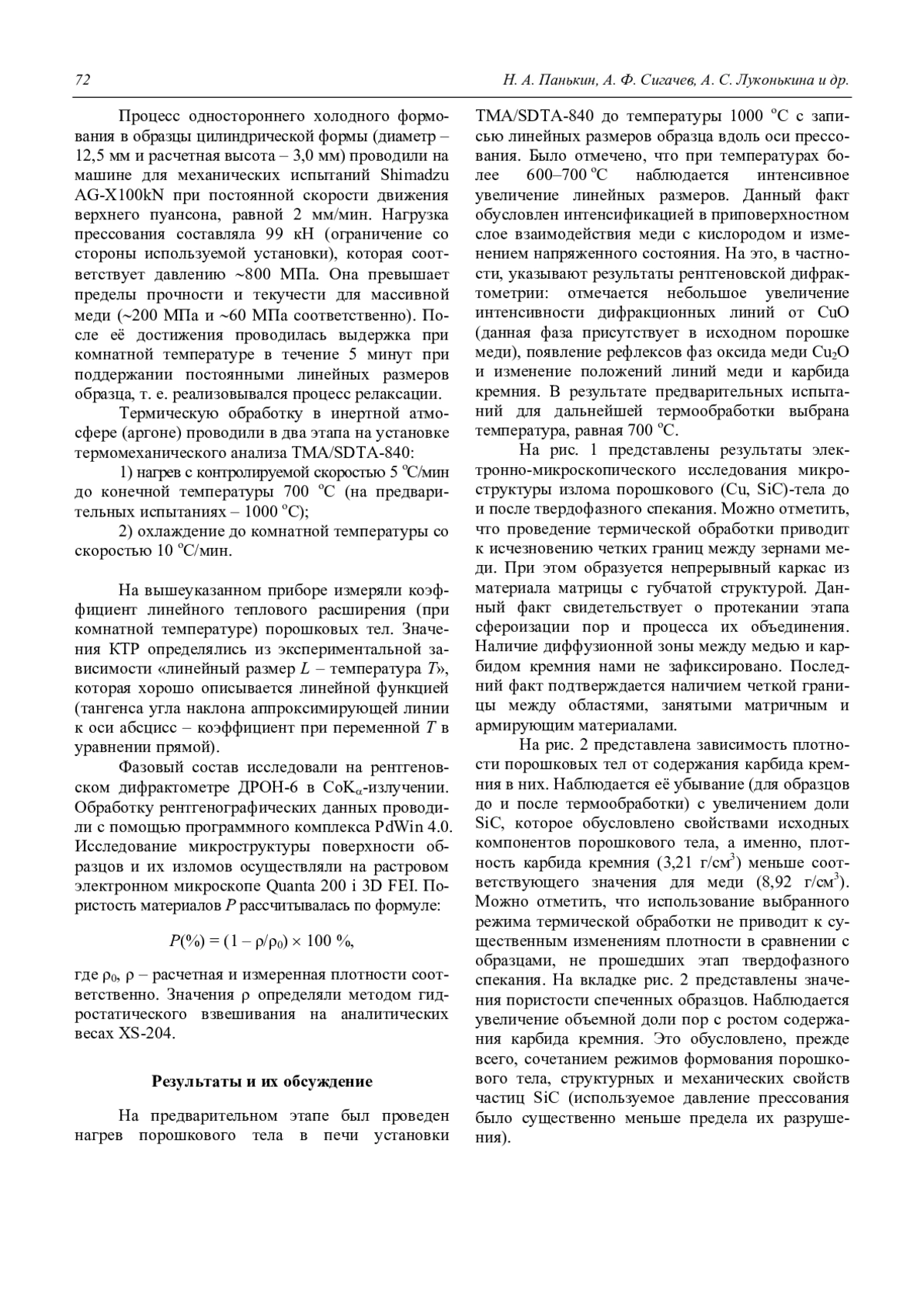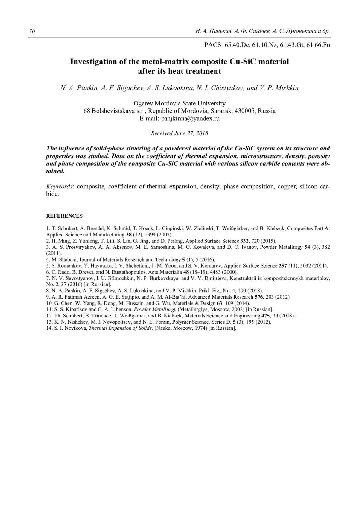 Панькин Н. А., Сигачев А. Ф., Луконькина А. С., Чистяков Н. И., Мишкин В. П. Исследование металломатричного композиционного материала Cu-SiC после его термической обработки 71