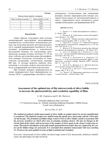 A. Kh. Tsypinova and E. Kh. Sherieva Assessment of the optimal size of flat microcrystals of silver halide to increase the photosensitivity and resolution capability of films 77