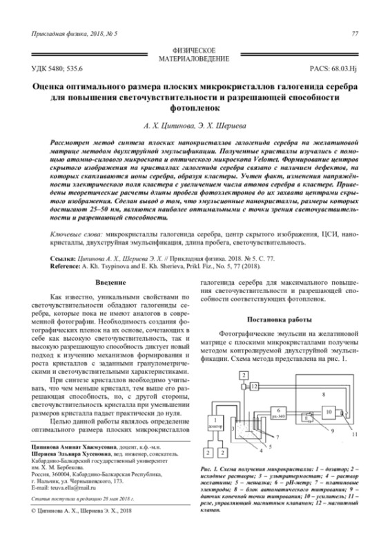 Ципинова А. Х., Шериева Э. Х. Оценка оптимального размера плоских микрокристаллов галогенида серебра для повышения светочувствительности и разрешающей способности фотопленок 77