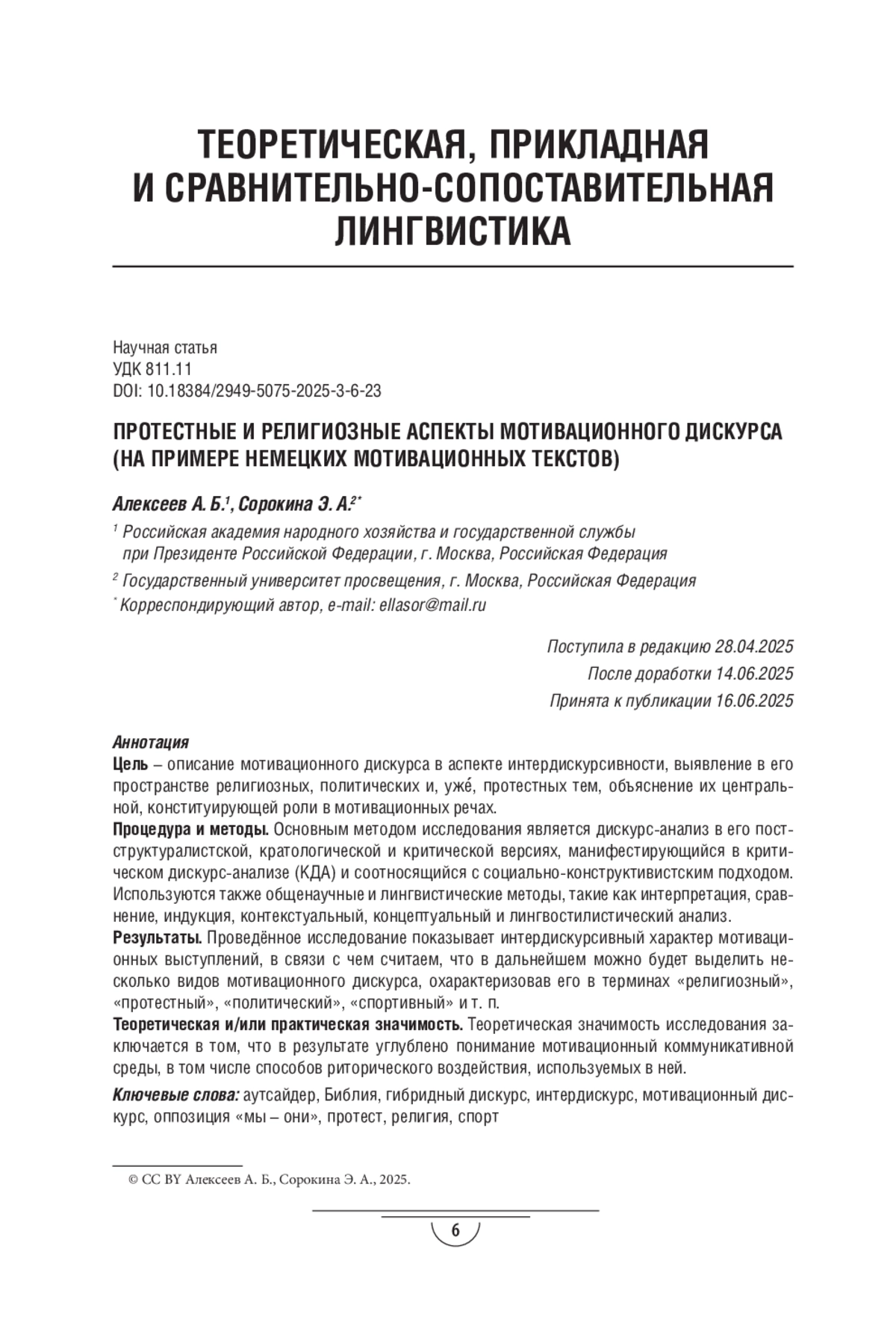 АЛЕКСЕЕВ А. Б., СОРОКИНА Э. А. ПРОТЕСТНЫЕ И РЕЛИГИОЗНЫЕ АСПЕКТЫ МОТИВАЦИОННОГО ДИСКУРСА (НА ПРИМЕРЕ НЕМЕЦКИХ МОТИВАЦИОННЫХ ТЕКСТОВ) // ВОПРОСЫ СОВРЕМЕННОЙ ЛИНГВИСТИКИ. 2025. № 3