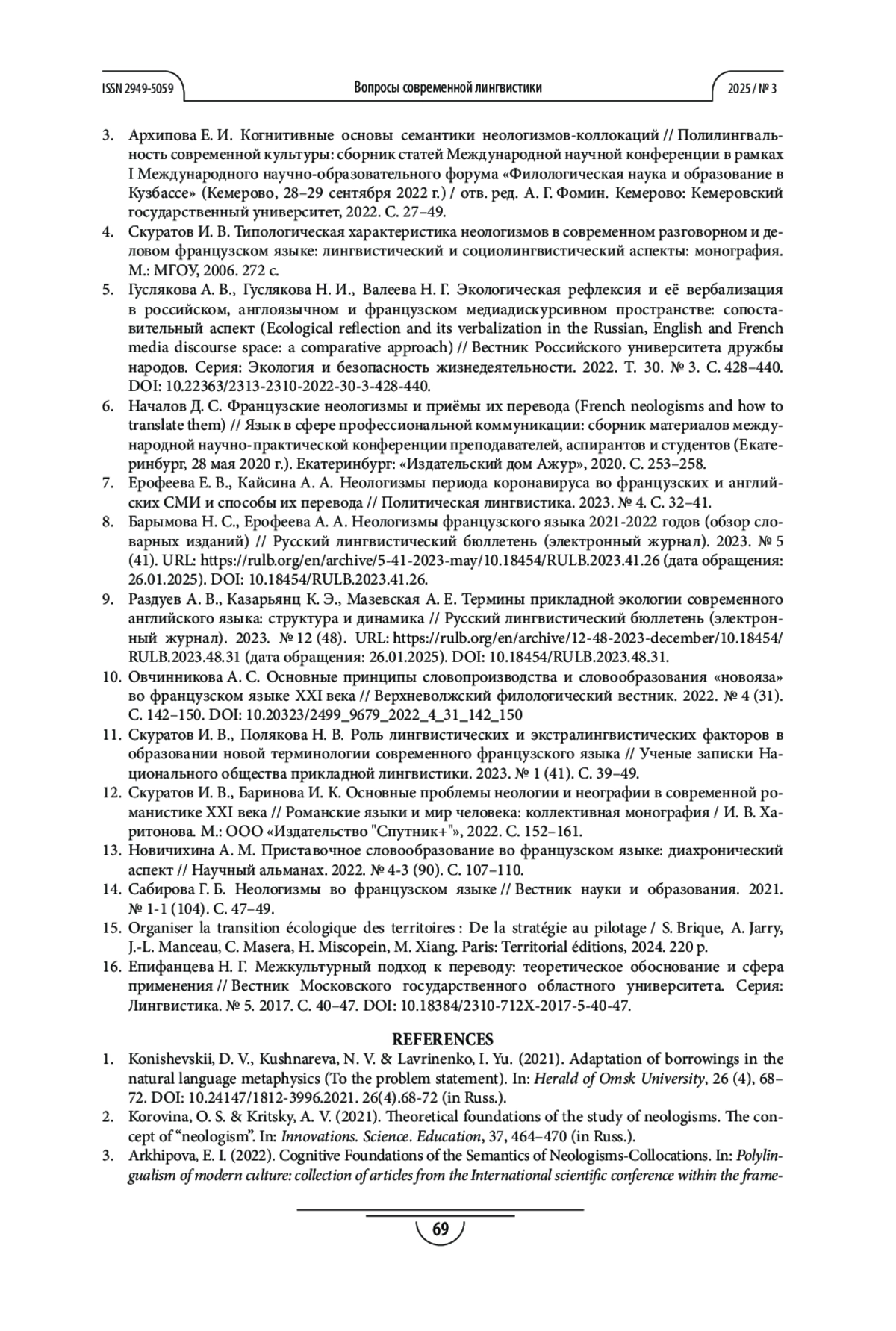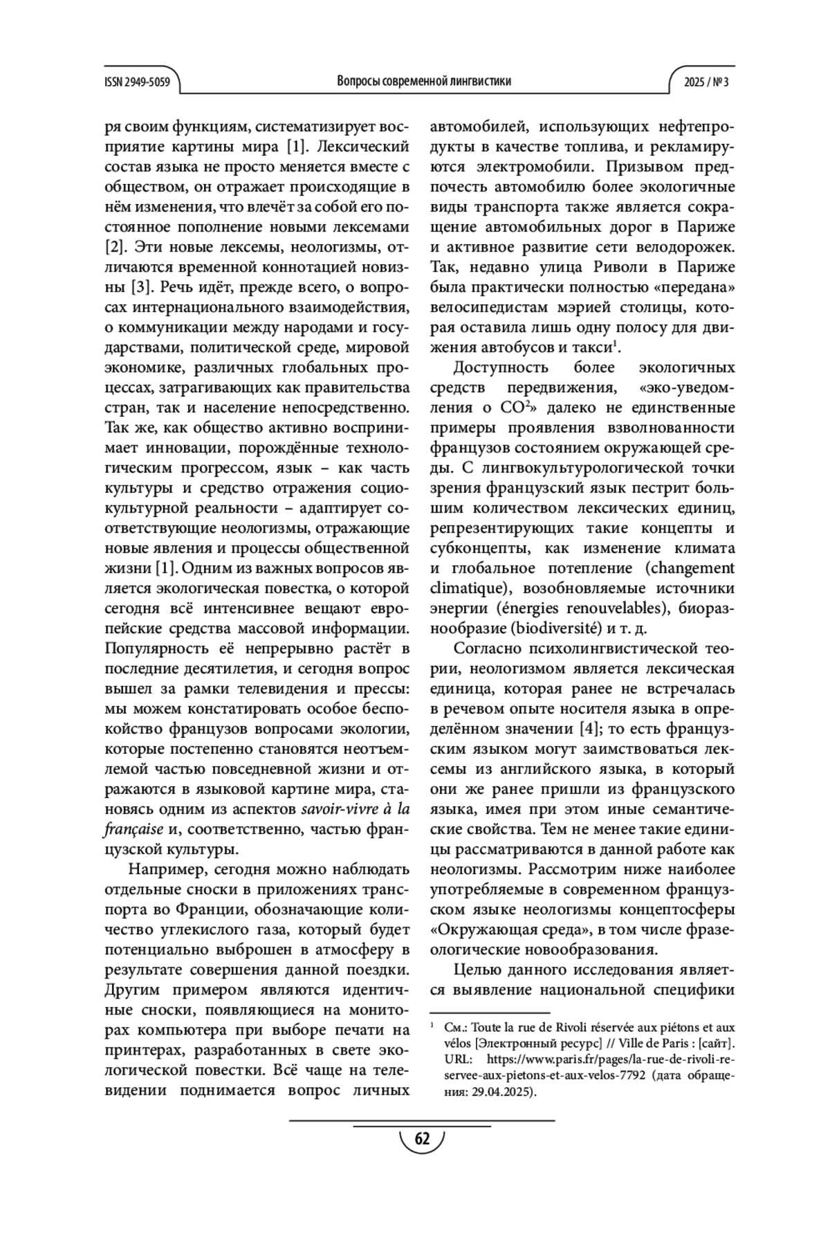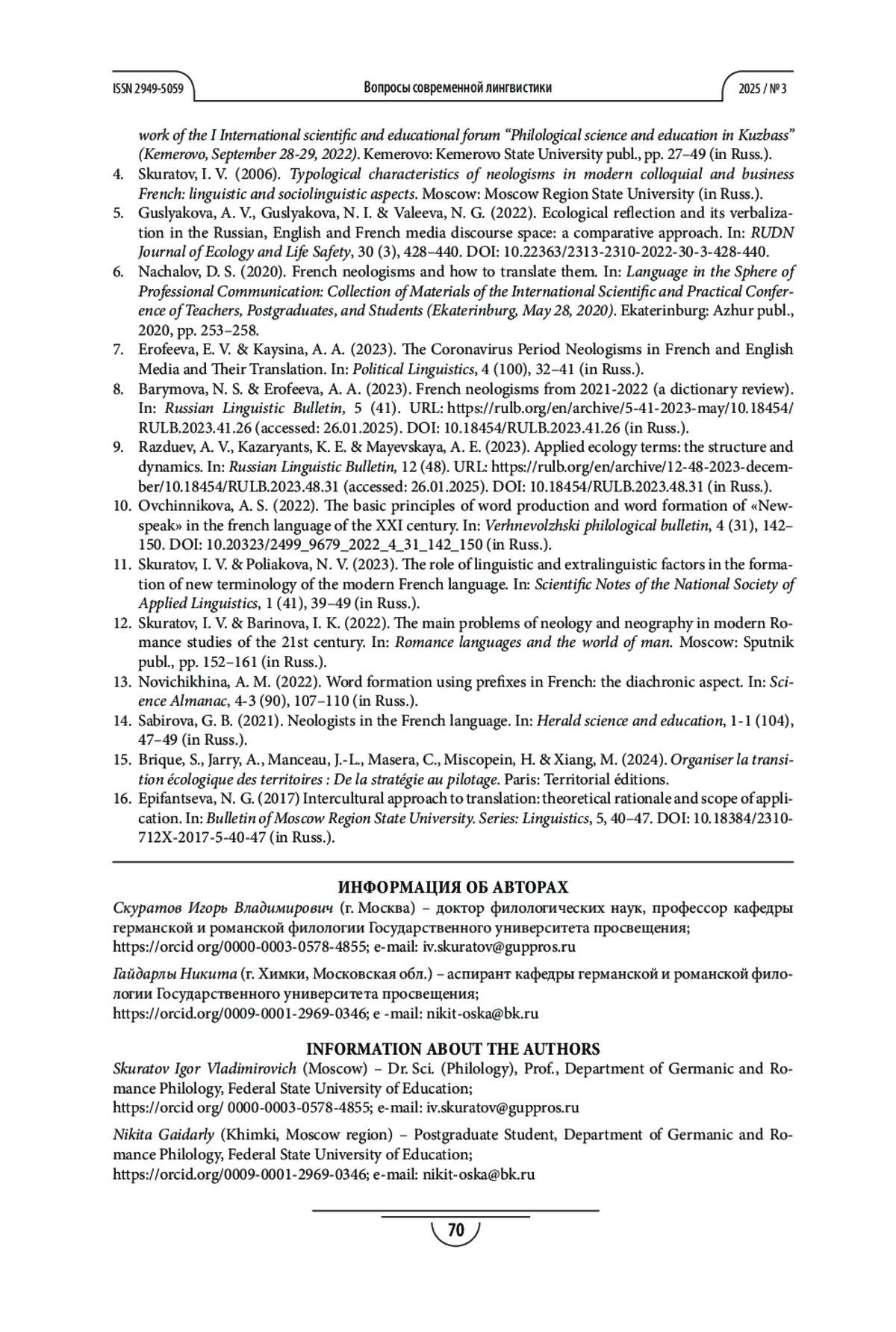 СКУРАТОВ И. В., ГАЙДАРЛЫ Н. В. ЛИНГВОКУЛЬТУРОЛОГИЧЕСКОЕ ИССЛЕДОВАНИЕ АКТУАЛЬНЫХ НЕОЛОГИЗМОВ КОНЦЕПТОСФЕРЫ «ОКРУЖАЮЩАЯ СРЕДА» ВО ФРАНЦУЗСКОМ ЯЗЫКЕ В ПОЛИТИЧЕСКОМ И СОЦИАЛЬНОМ КОНТЕКСТАХ // ВОПРОСЫ СОВРЕМЕННОЙ ЛИНГВИСТИКИ. 2025. № 3