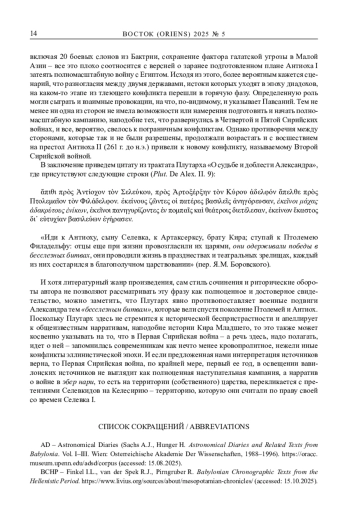 2. Зелинский А.Л. Результаты I Сирийской войны для государства Птолемеев. Восток (Oriens). 2015. № 5. С. 34-41.