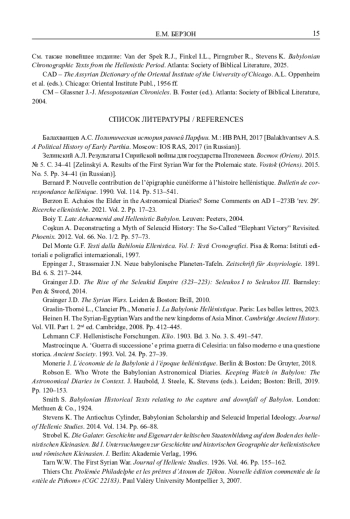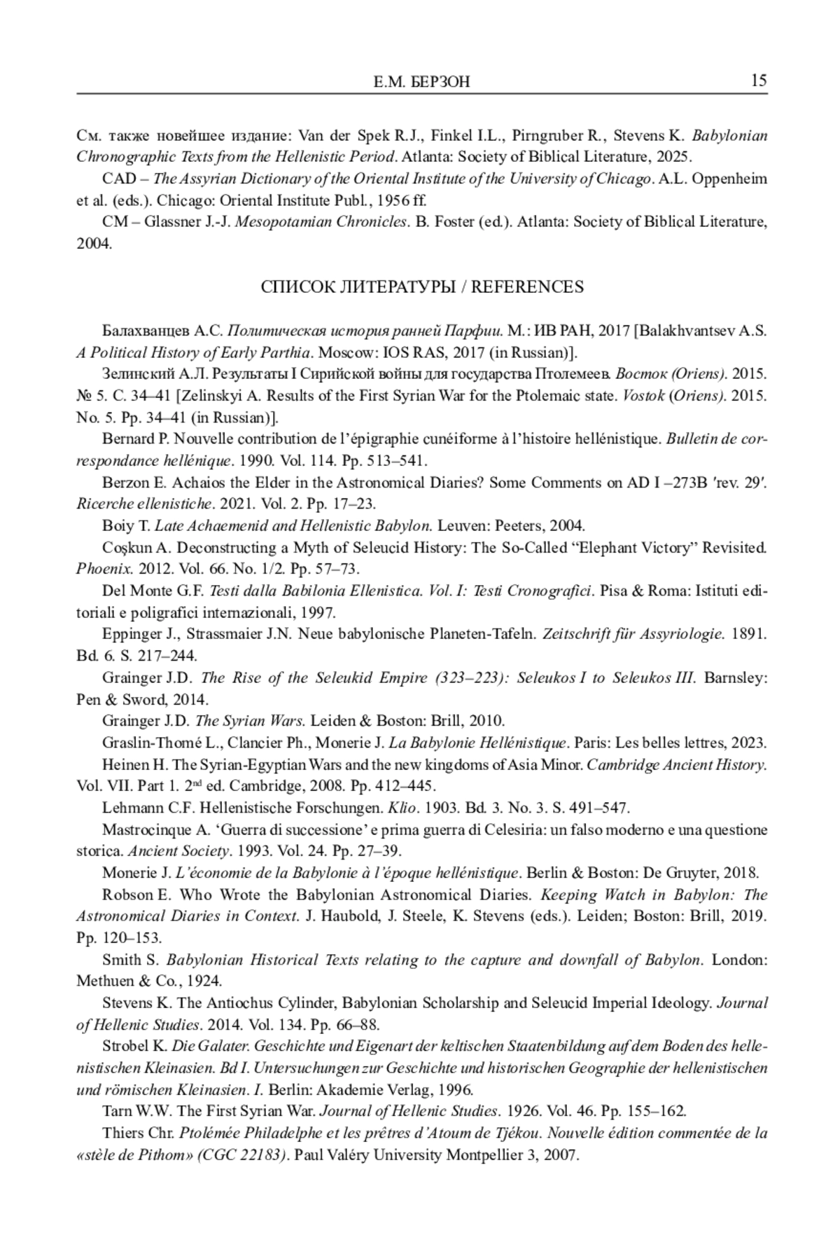 3. Bernard P. Nouvelle contribution de l’épigraphie cunéiforme à l’histoire hellénistique. Bulletin de correspondance hellénique. 1990. Vol. 114. Pp. 513-541.