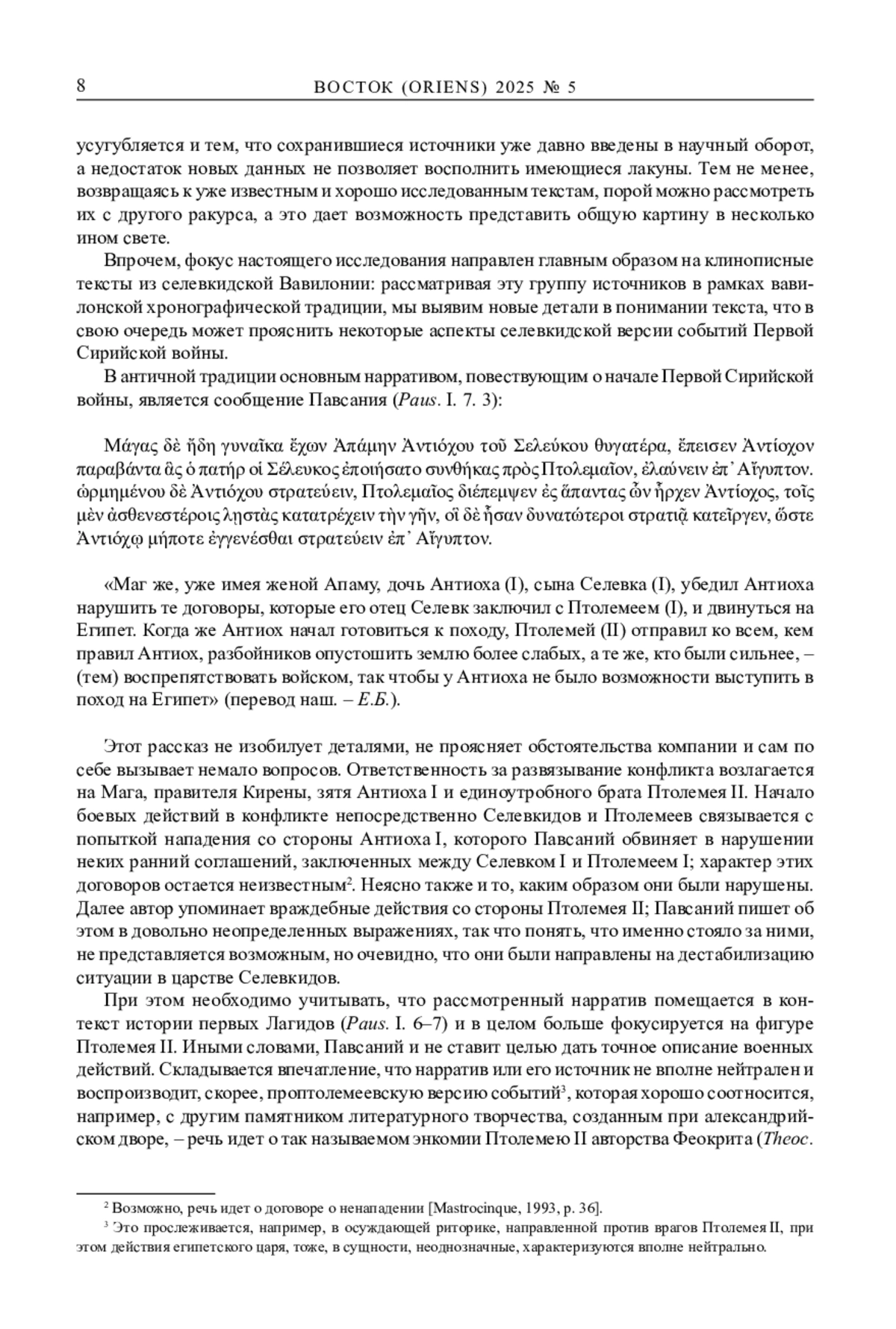 14. Mastrocinque A. ‘Guerra di successione’ e prima guerra di Celesiria: un falso moderno e una questione storica. Ancient Society. 1993. Vol. 24. Pp. 27-39.