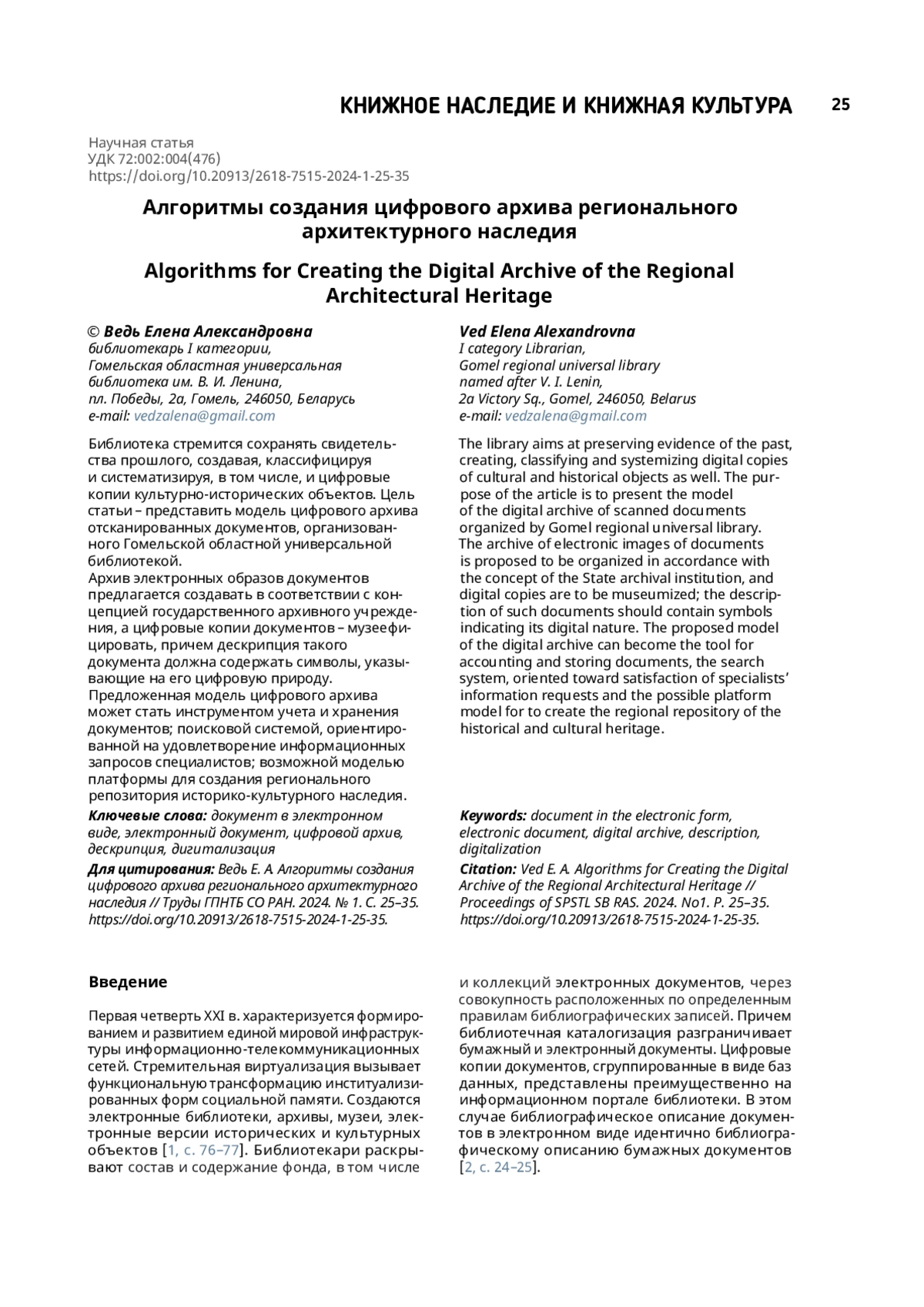 4. Цифровые технологии в деле охраны культурного наследия / Д. Д. Буркальцева [и др.] // Вопросы истории. 2022. № 12 (1). С. 124-141.