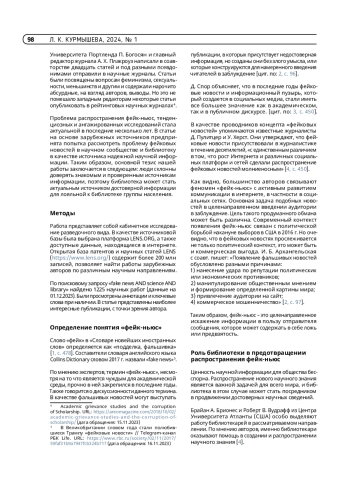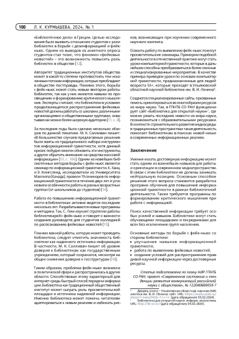 Статья: Роль библиотек в предотвращении распространения фейковых новостей в научной среде (2024)