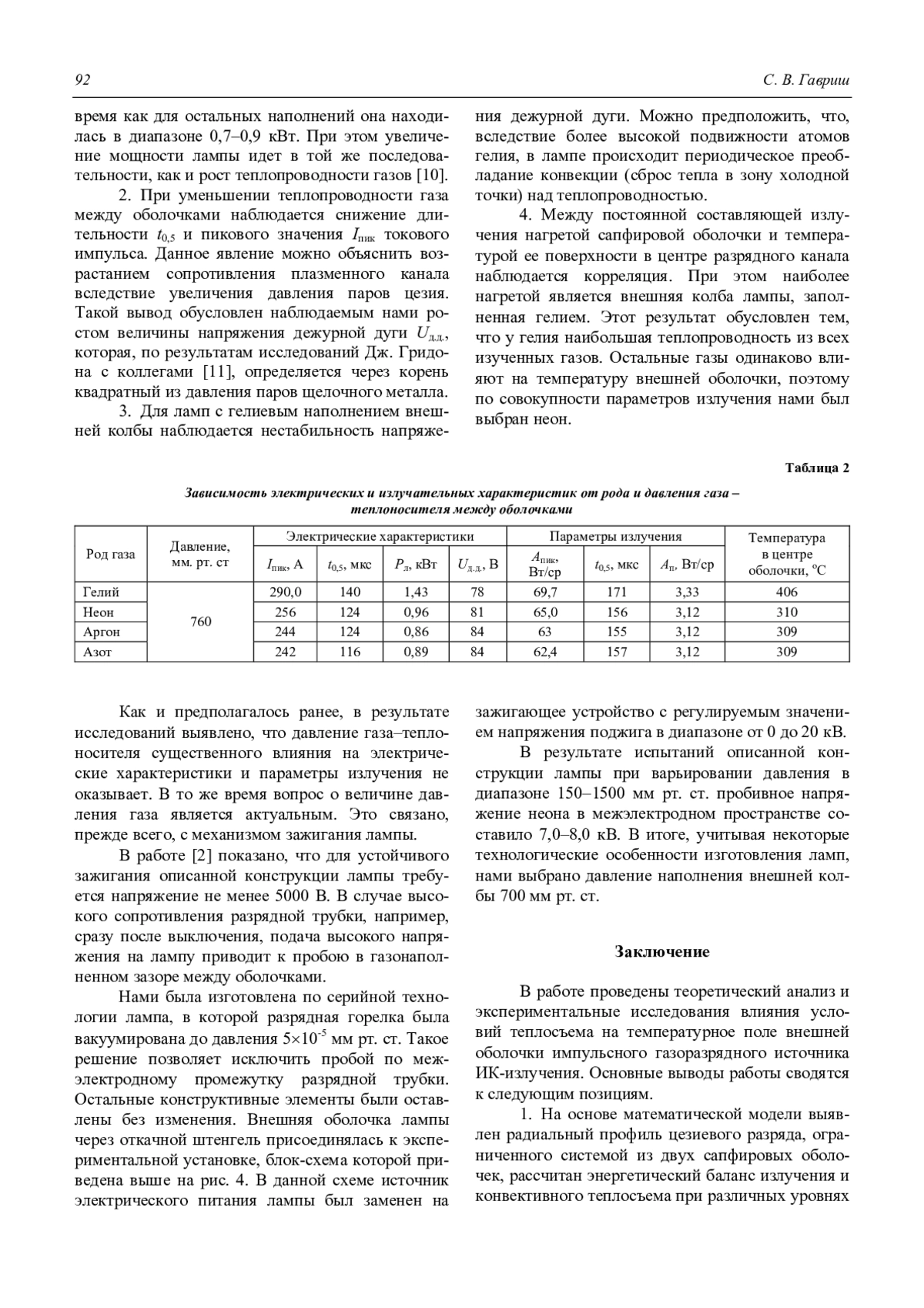 Гавриш С. В. Влияние условий теплосъема на параметры импульсного газоразрядного источника ИК-излучения 86