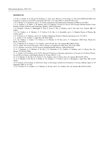 5. Yushkov G. Yu., Nikolaev A. G., Frolova V. P., Oks E. M., Rousskikh A. G., Zhigalin A. S. // Physics of Plasmas. 2017. Vol. 24. P. 123501.