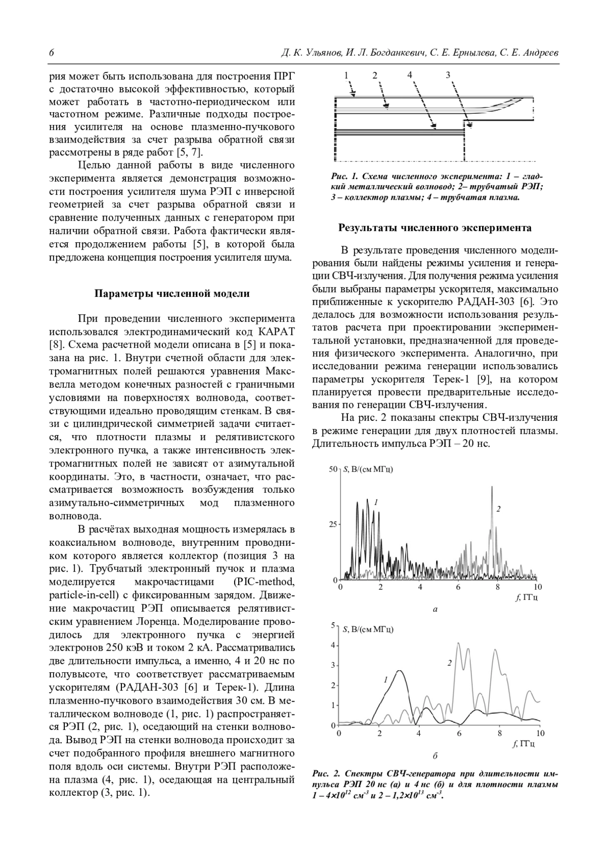 Ульянов Д. К., Богданкевич И. Л., Ернылева С. Е., Андреев С. Е. Широкополосный плазменный релятивистский источник СВЧ-излучения с малой длительностью импульса 5