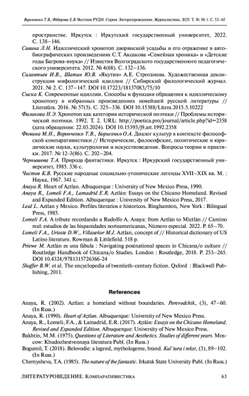 16. Фаликова Н.Э. Хронотоп как категория исторической поэтики // Проблемы исторической поэтики. 1992. Т. 2. URL: http://poetica.pro/journal/article.php?id=2358 (дата обращения: 22.03.2024). DOI: 10.15393/j9.art.1992.2358 EDN: SFOKCZ