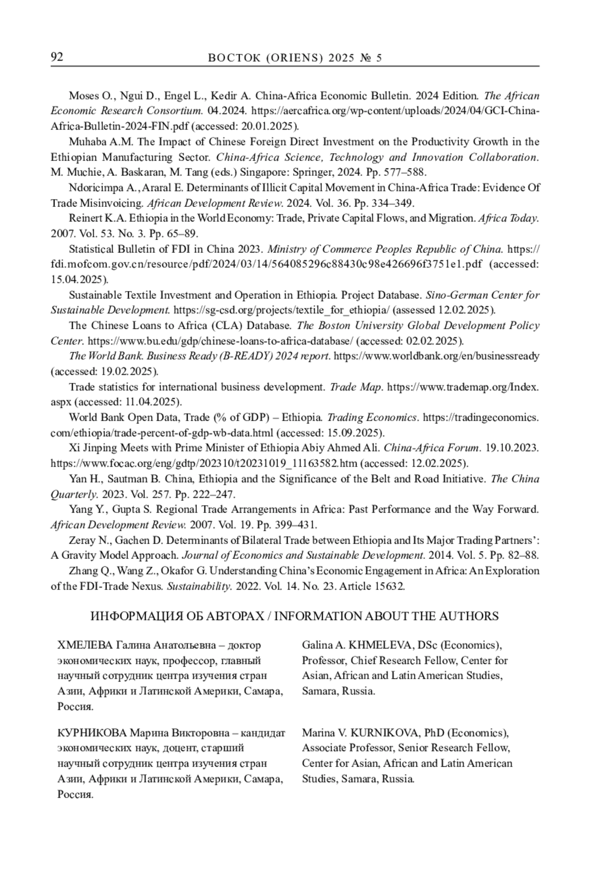 41. Xinhua. Chinese investors vitalize Ethiopia’s economic growth: investment commission https://english.news.cn/20241014/10946e958701473885a7a8b1eeaec1aa/c.html (assessed 12.02.2025).