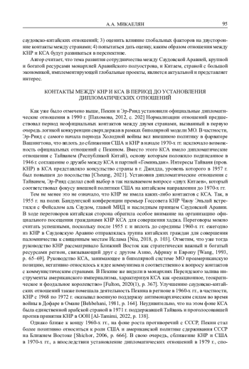 3. Мелкумян Е.С. Саудовская Аравия между США и Китаем в XXI веке: успешное балансирование. Мировая экономика и международные отношения. 2024. 68. № 5. С. 61-71.