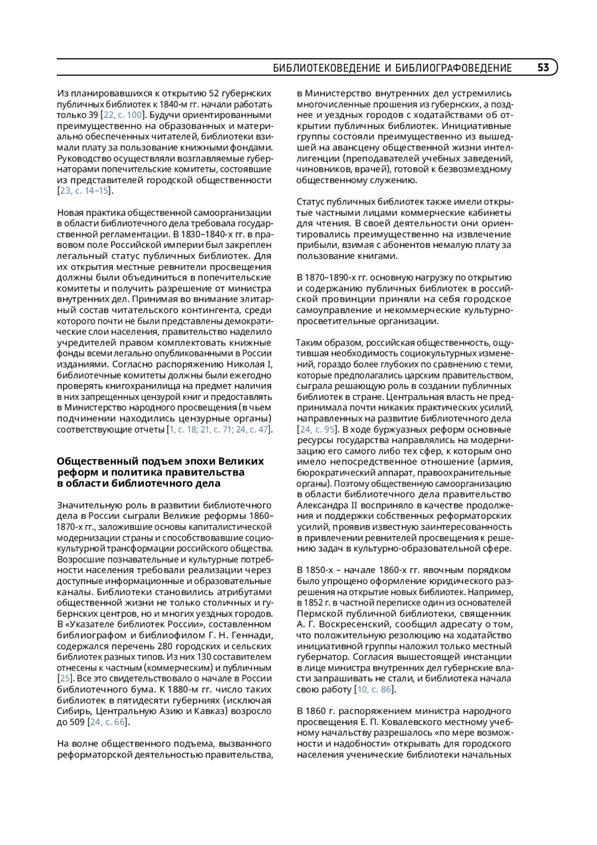 Статья: Государственная регламентация деятельности публичных библиотек в России во второй половине XIX в. (2024)