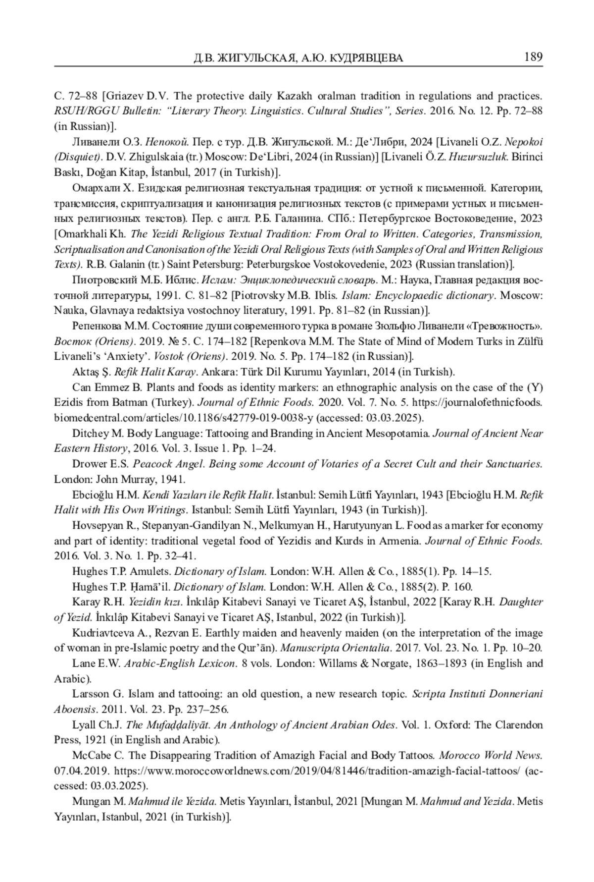 23. Yazıcı M. Refik Halid Karay’ın “Yezid’in kızı” romanında Yezidilik, Yezidler ve bazı tespitler. Anemon Muş Alparslan Üniversitesi Sosyal Bilimler Dergisi. 2019. No. 3. Pp. 255-264 [Yazıcı M. Yezidism, Yezidis and some determinations in the novel ‘Daughter of Yezid’ by Refik Halid Karay. Anemon Muş Alparslan University Journal of Social Sciences. 2019. No. 3. Pp. 255-264 (in Turkish)].