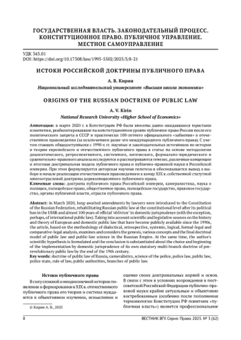 Всилу сложнойинеоднозначнойисториипоявленияи формирования в XIX в. отечественного публичного права его теория и система нуждаются в объективном изучении, осмыслении и оценке своих доктринальных корней и основ