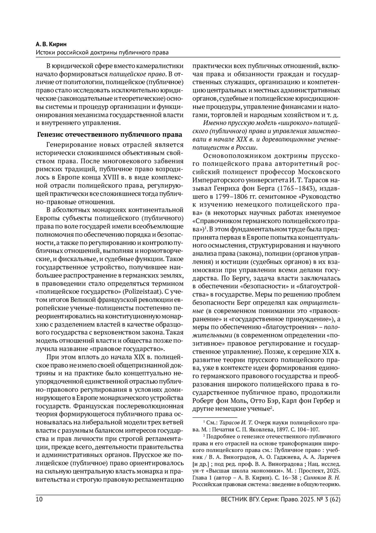 15. Публичное право: учебник / В. А. Виноградов,A. О. Гаджиева, А. А. Ларичев [ и др.]; под ред. проф.B. А. Виноградова; Нац. исслед. ун-т “Высшая школа экономики”. М.: Проспект, 2025. Глава 1 (автор - А. В. Кирин). С. 16-38.