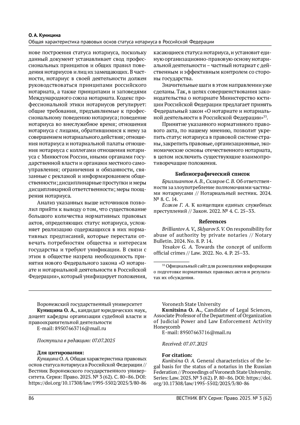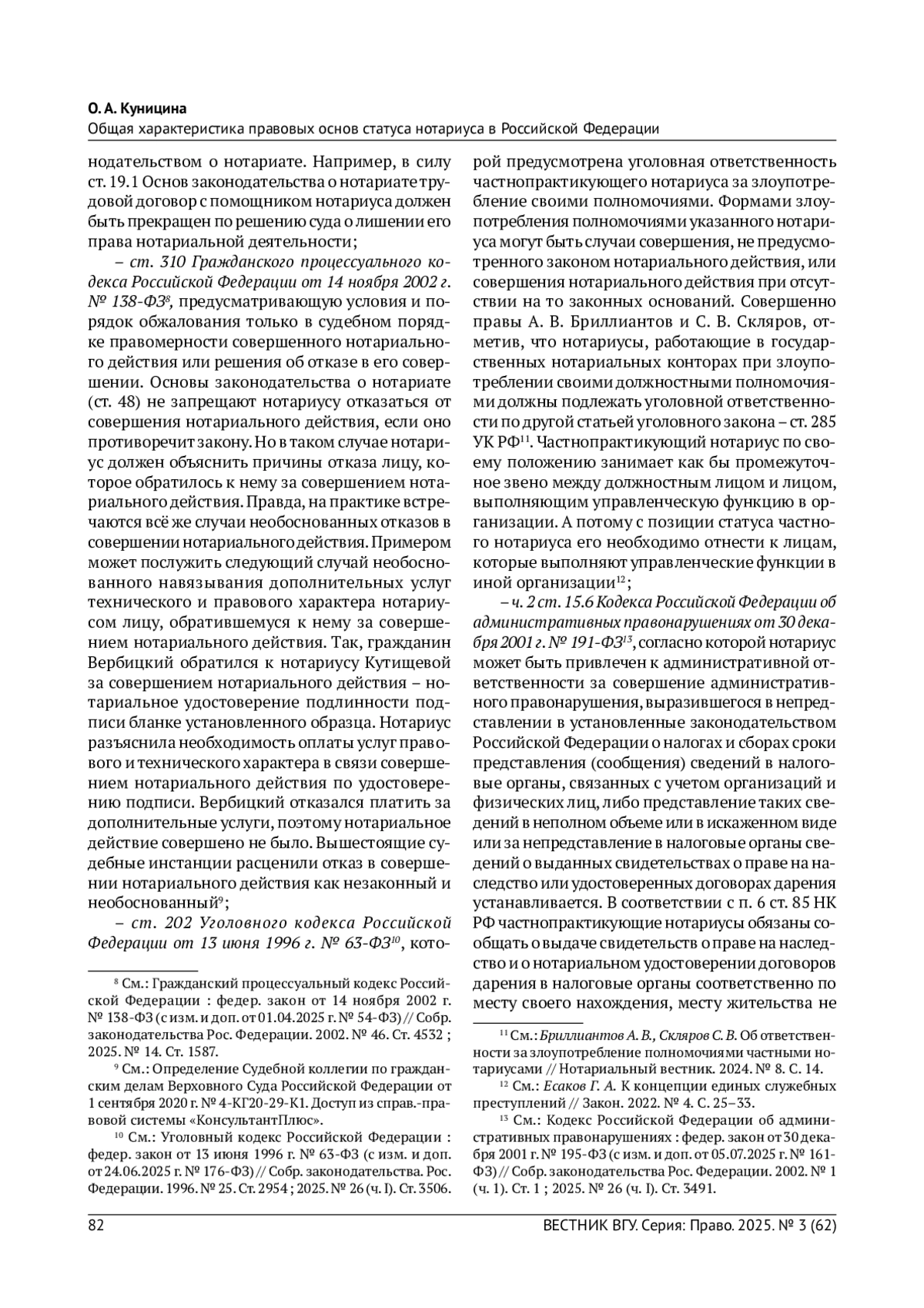 1. Бриллиантов А. В., Скляров С. В. Об ответственности за злоупотребление полномочиями частными нотариусами // Нотариальный вестник. 2024. № 8. С. 14.