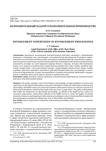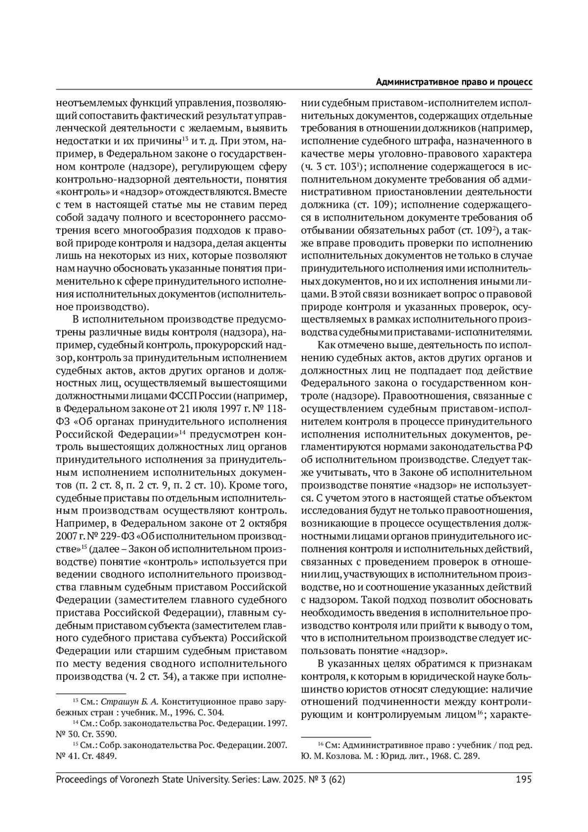 7. Воронов А. М. Контроль и надзор в системе мер обеспечения законности государственного администрирования в сфере экономики // Современная наука: актуальные проблемы теории и практики. Серия: Экономика и право. 2019. № 1. C. 83-88. EDN: PPGMOH