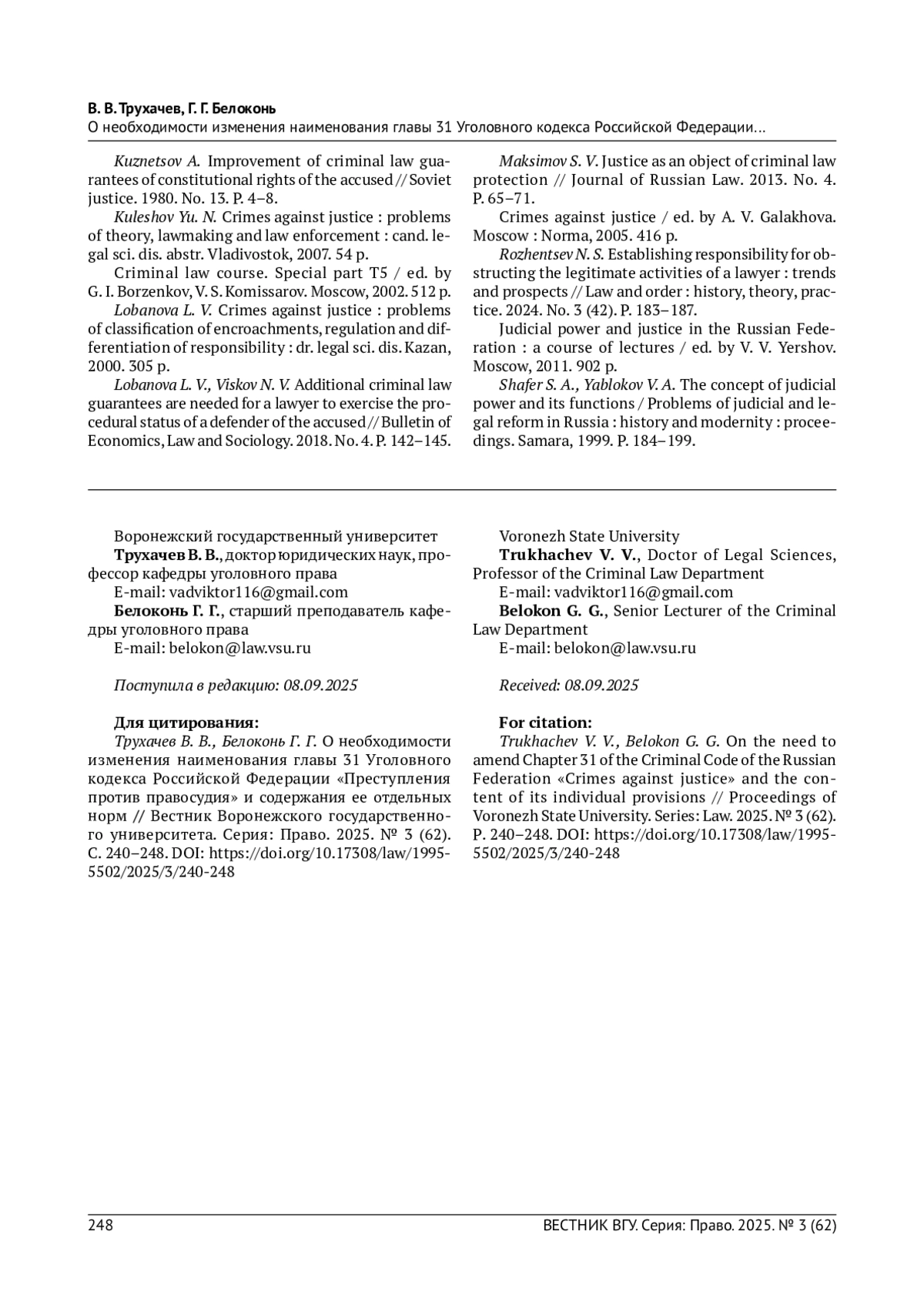 12. Максимов С. В. Правосудие как объект уголовно-правовой охраны // Журнал российского права. 2013. № 4. С. 65-71. EDN: QZPJLN