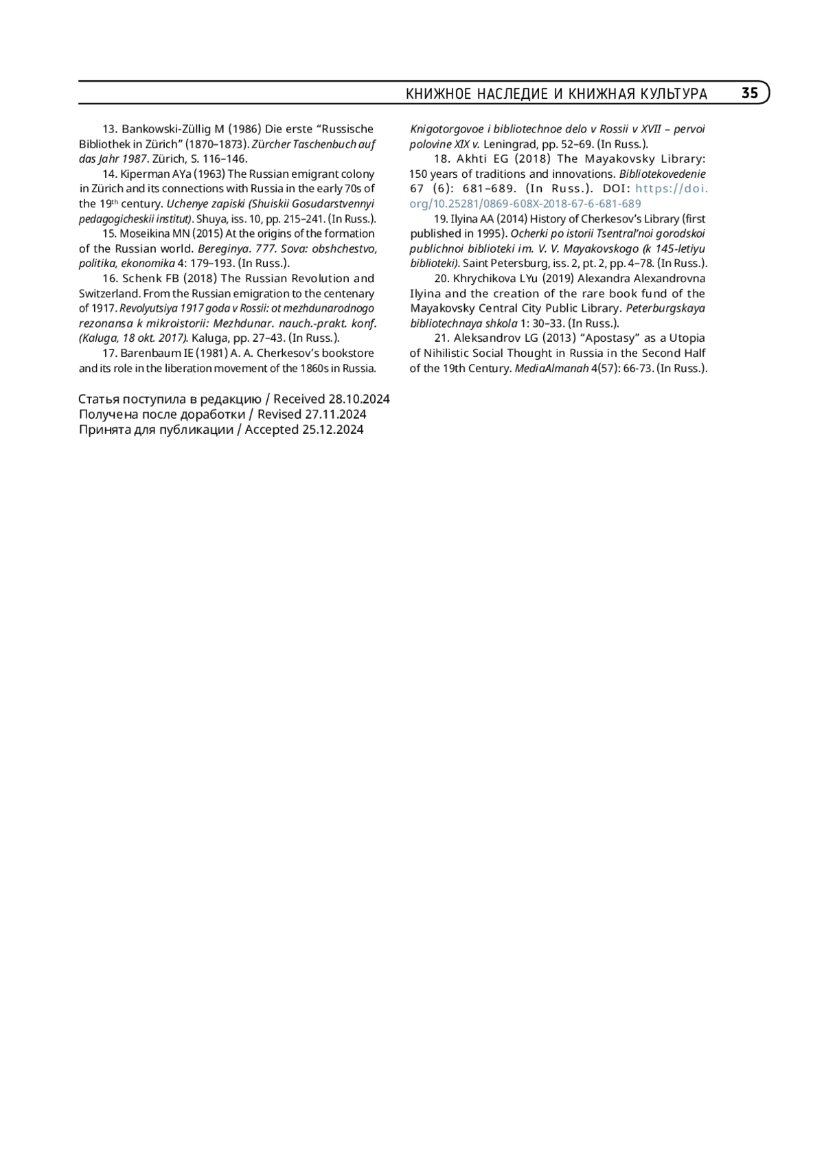 13. Bankowski-Züllig M. Die erste «Russische Bibliothek in Zürich» (1870-1873) //. Zürich, 1986. S. 116-146.