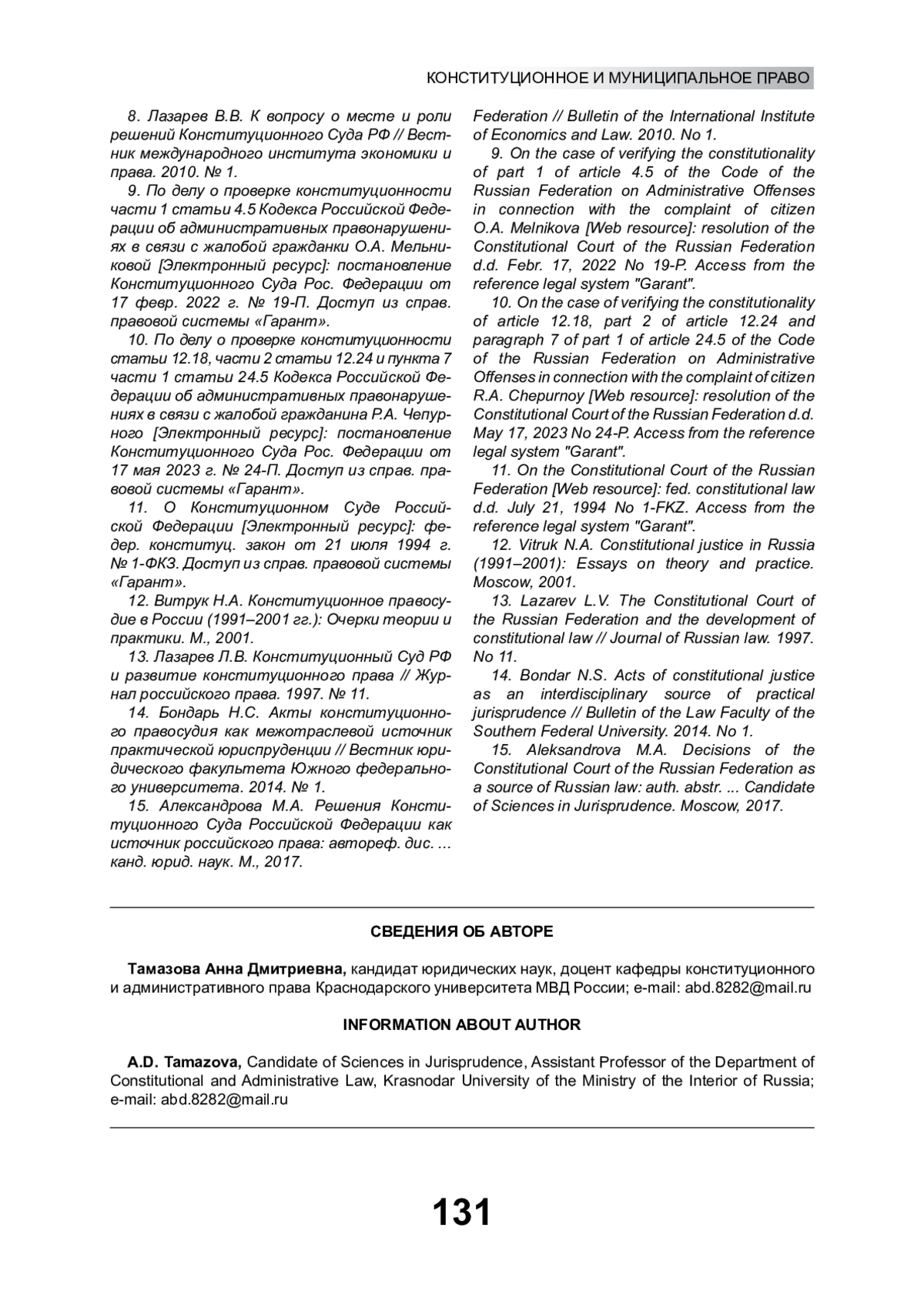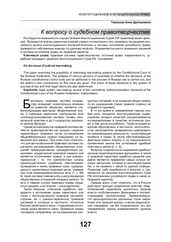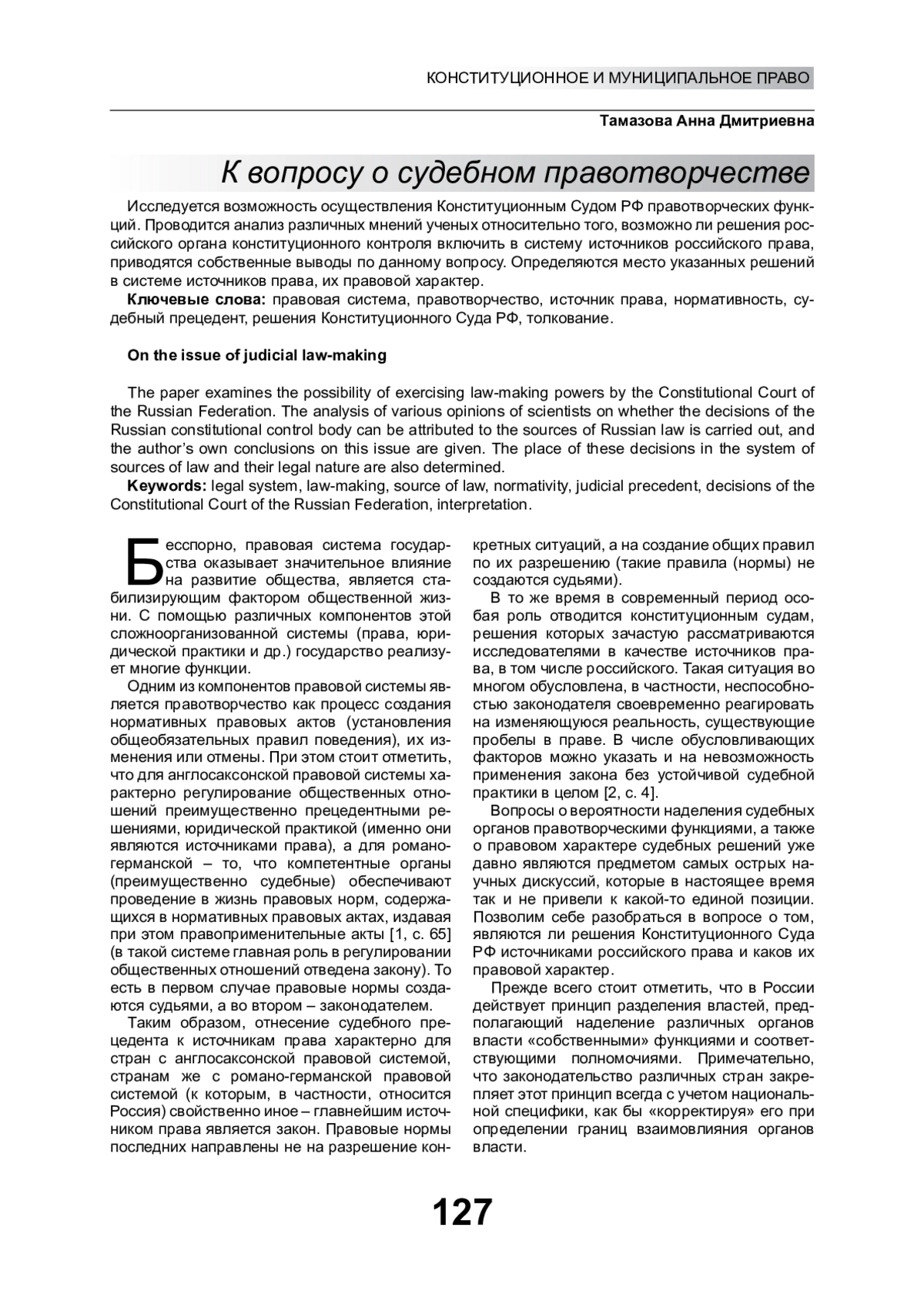 Ключевые фразы: правовая система, ПРАВОТВОРЧЕСТВО, ИСТОЧНИК ПРАВА, нормативность, судебный прецедент, решения конституционного суда рф, толкование