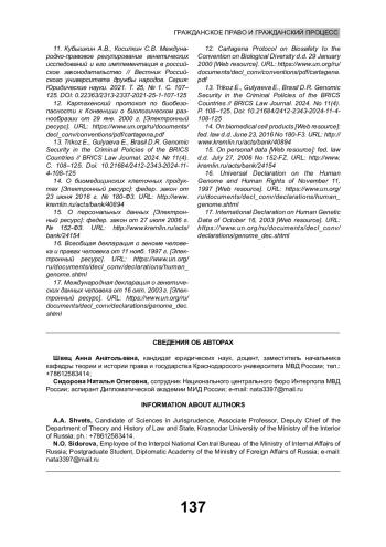 Ключевые фразы: генетические исследования, биоправо, генетическая информация, персональные данные, охрана здоровья, ГЕНЕТИЧЕСКИЕ ТЕХНОЛОГИИ, РЕДАКТИРОВАНИЕ ГЕНОМА, международные стандарты