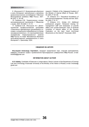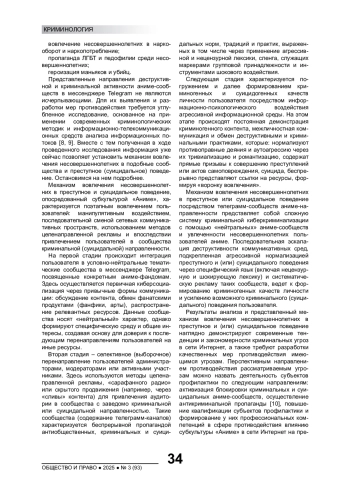 ИЛЬНИЦКИЙ А. С. КРИМИНОГЕННЫЙ ПОТЕНЦИАЛ СУБКУЛЬТУРЫ «АНИМЕ» В СЕТИ ИНТЕРНЕТ И МЕХАНИЗМ ВОВЛЕЧЕНИЯ НЕСОВЕРШЕННОЛЕТНИХ В ПРЕСТУПНОЕ ИЛИ СУИЦИДАЛЬНОЕ ПОВЕДЕНИЕ // ОБЩЕСТВО И ПРАВО. 2025. № 3 (93)