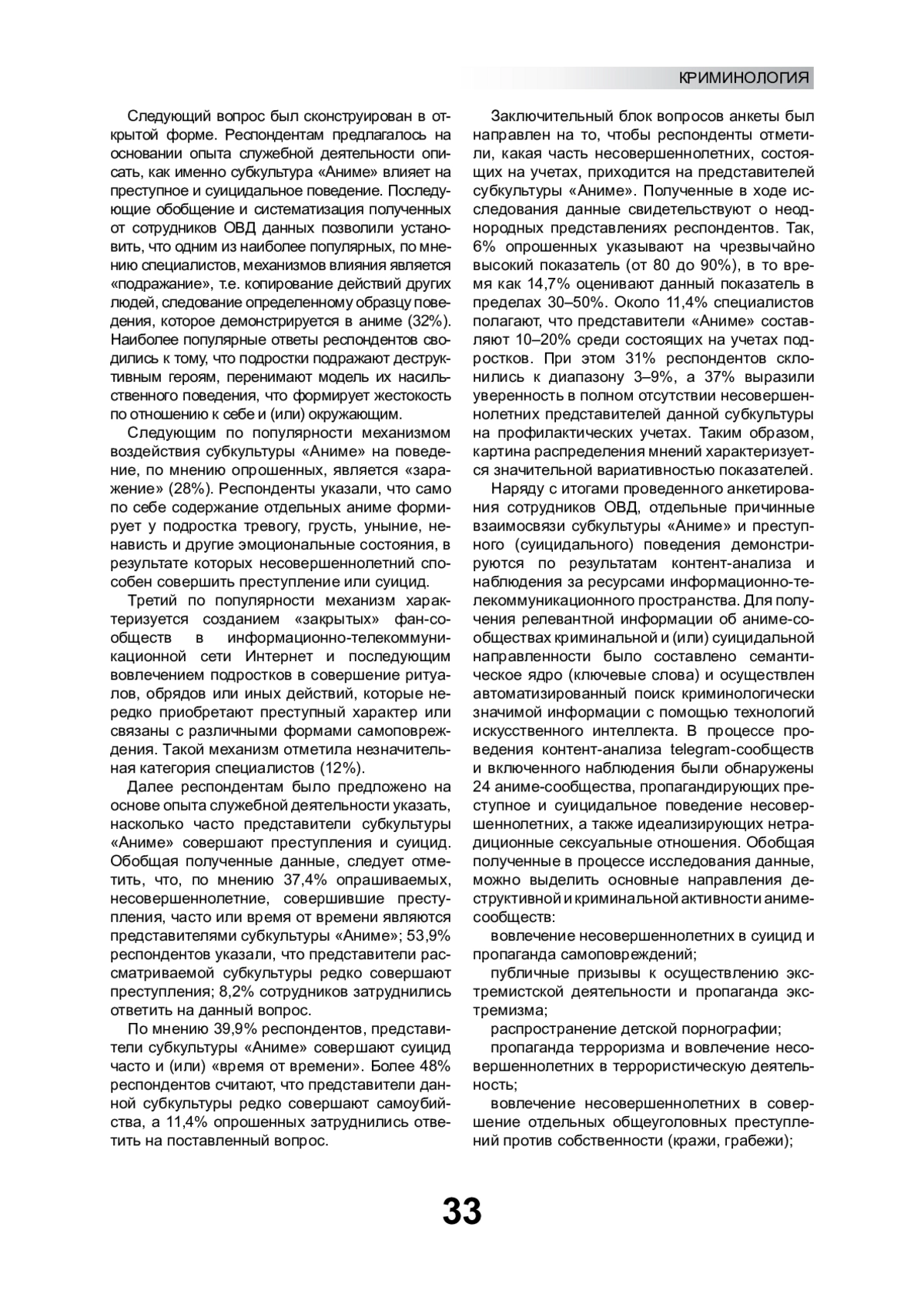 Ключевые фразы: криминология, криминологическое исследование, СУБКУЛЬТУРА, аниме, сеть интернет, вовлечение в преступление, СУИЦИД