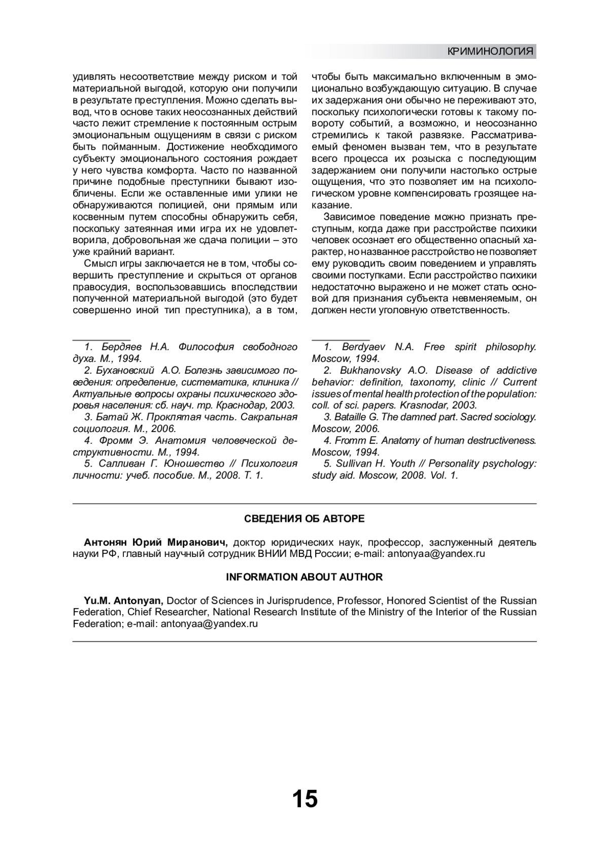 2. Бухановский А.О. Болезнь зависимого поведения: определение, систематика, клиника // Актуальные вопросы охраны психического здоровья населения: сб. науч. тр. Краснодар, 2003.