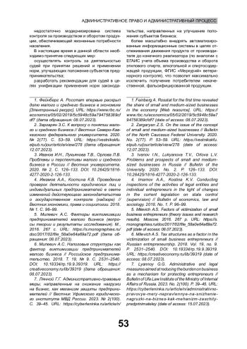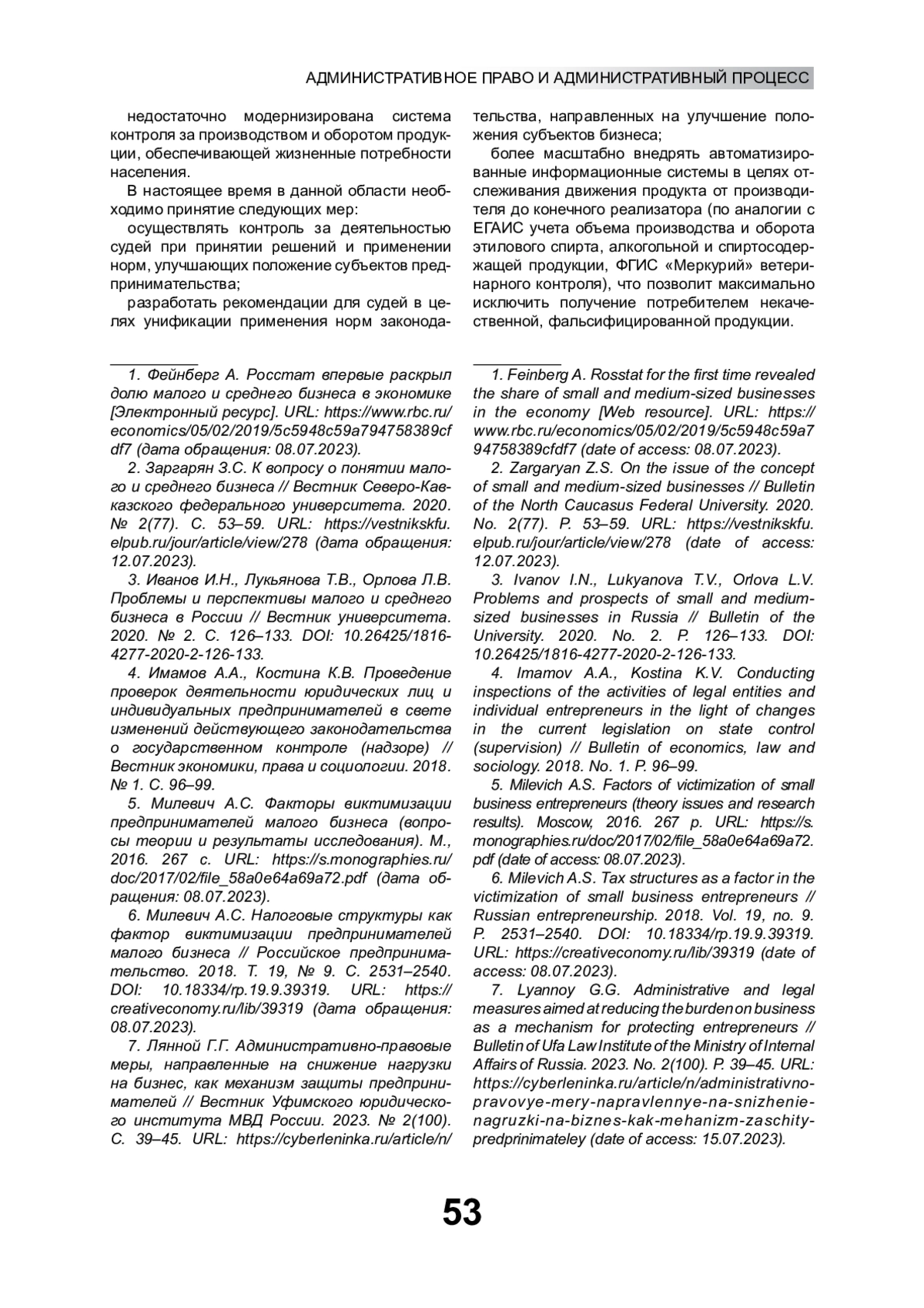 7. Лянной Г.Г. Административно-правовые меры, направленные на снижение нагрузки на бизнес, как механизм защиты предпринимателей // Вестник Уфимского юридического института МВД России. 2023. № 2(100). С. 39-45. URL: https://cyberleninka.ru/article/n/administrativno-pravovye-mery-napravlennye-na-snizhenie-nagruzki-na-biznes-kak-mehanizm-zaschity-predprinimateley (дата обращения: 15.07.2023). EDN: IOKDFP