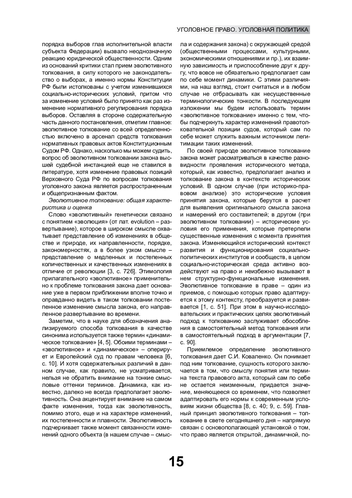9. Коваленко С.И. Эволюционный подход к толкованию норм Европейской конвенции о защите прав человека и основных свобод: понятие и сущность // Евразийский юридический журнал. 2017. № 11(114). С. 58-65. EDN: ZXJKYD
