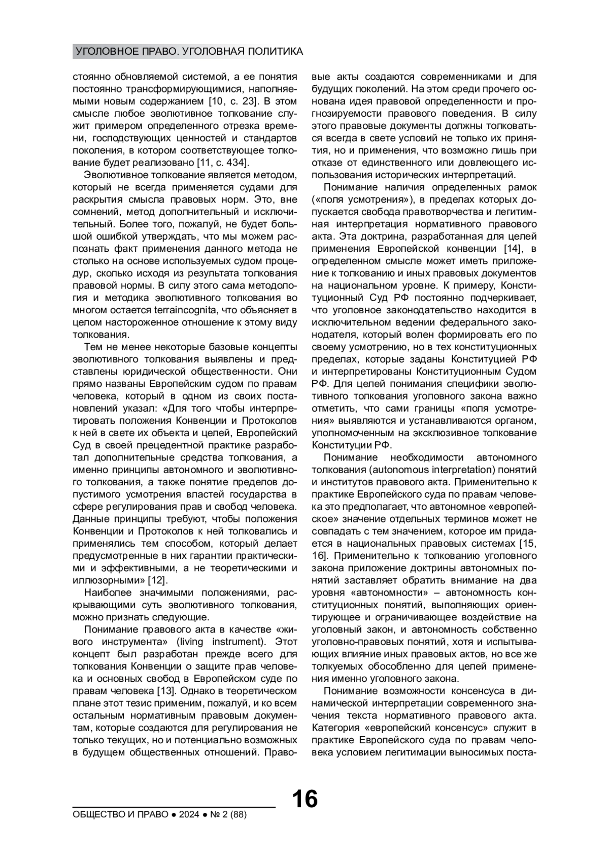 25. Ковлер А.И. Эволютивное толкование Европейской конвенции по правам человека: возможности и пределы. Европейский суд по правам человека как субъект толкования права // Журнал зарубежного законодательства и сравнительного правоведения. 2016. № 3. С. 92-100. EDN: WGERYV