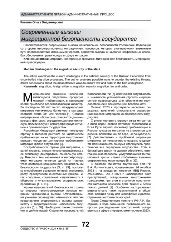 12. Емелин С.М. Миграционная безопасность: внутренние проблемы России // Миграционное право. 2023. № 3. С. 11-13. EDN: UCFMKA