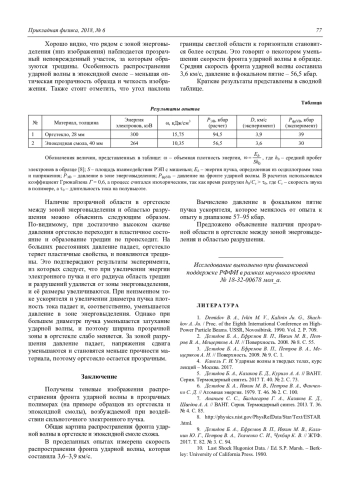 В проделанных опытах измерена скорость распространения фронта ударной волны, которая составила 3,6–3,9 км/с.