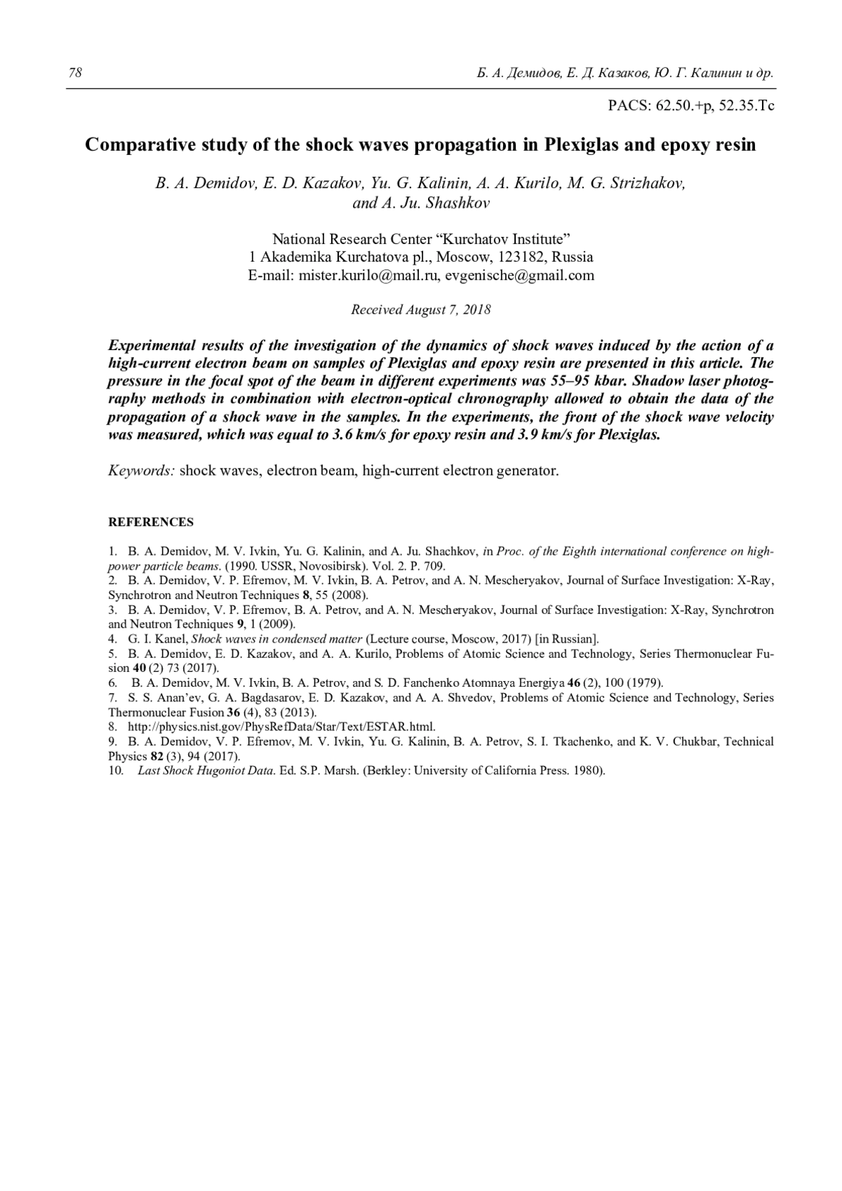 2. Демидов Б. А., Ефремов В. П., Ивкин М. В., Петров В. А., Мещеряков А. Н. // Поверхность. 2008. № 8. С. 55.