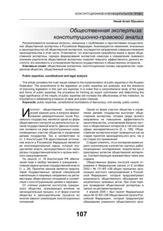 Институт общественной экспертизы играет важную роль в вопросе формирования демократических основ Российского государства, является одной из форм общественного контроля за деятельностью органов государственной власти. Данное положение основано на ряде конституционных норм, посвященных участию общества в управлении делами государства. Так, в соответствии со ст. 3 Конституции РФ единственным источником власти в Российской Федерации является ее многонациональный народ, который осуществляет власть непосредственно или через органы государственной власти и органы местного самоуправления.