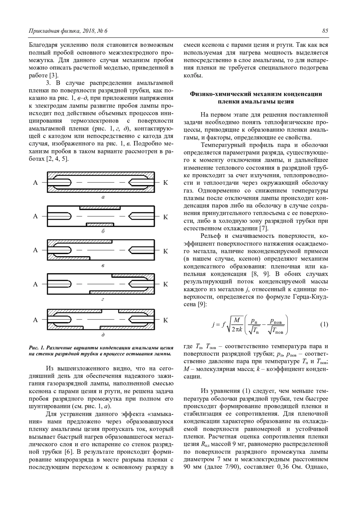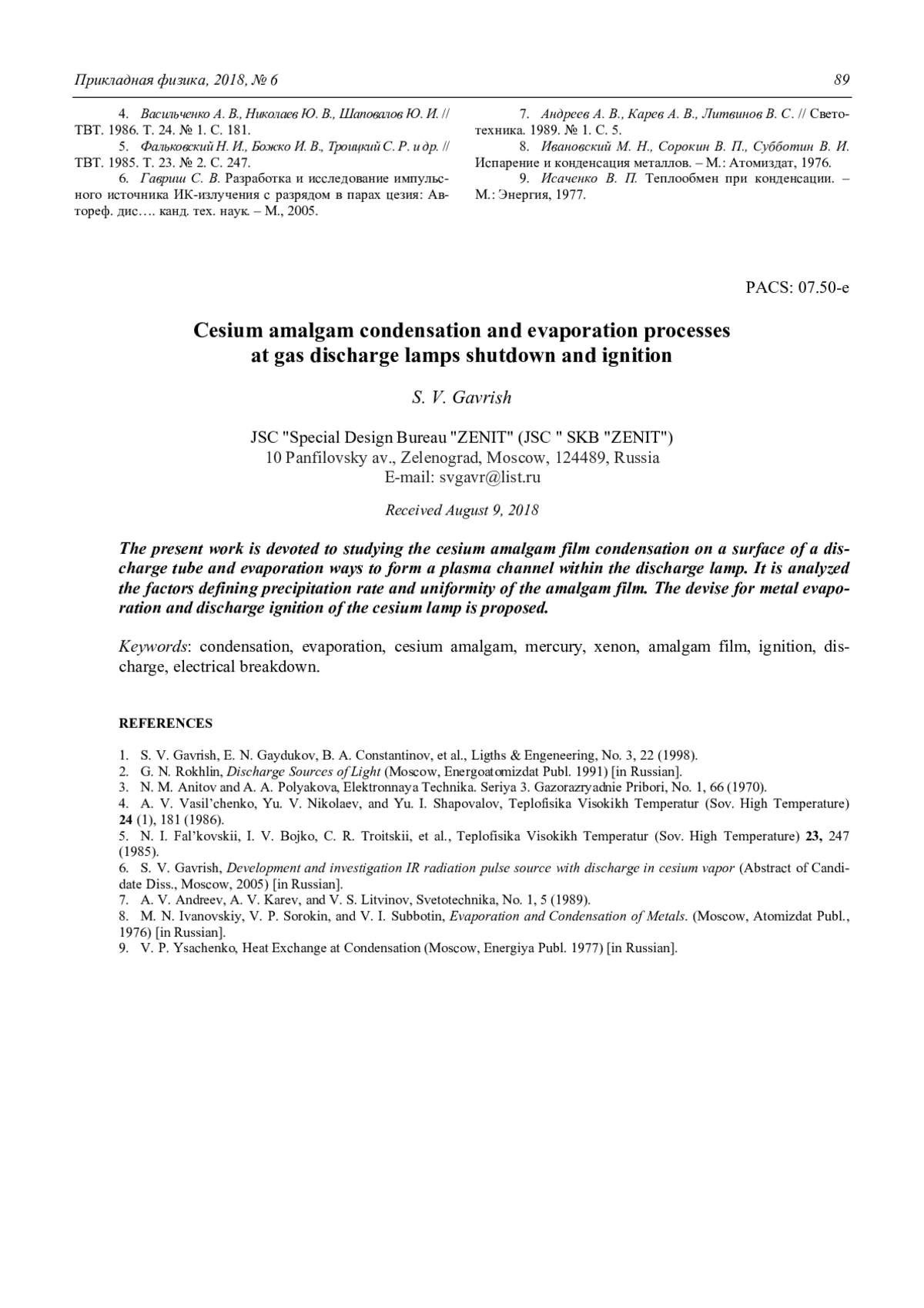 S. V. Gavrish Cesium amalgam condensation and evaporation processes at gas discharge lamps shutdown and ignition 84