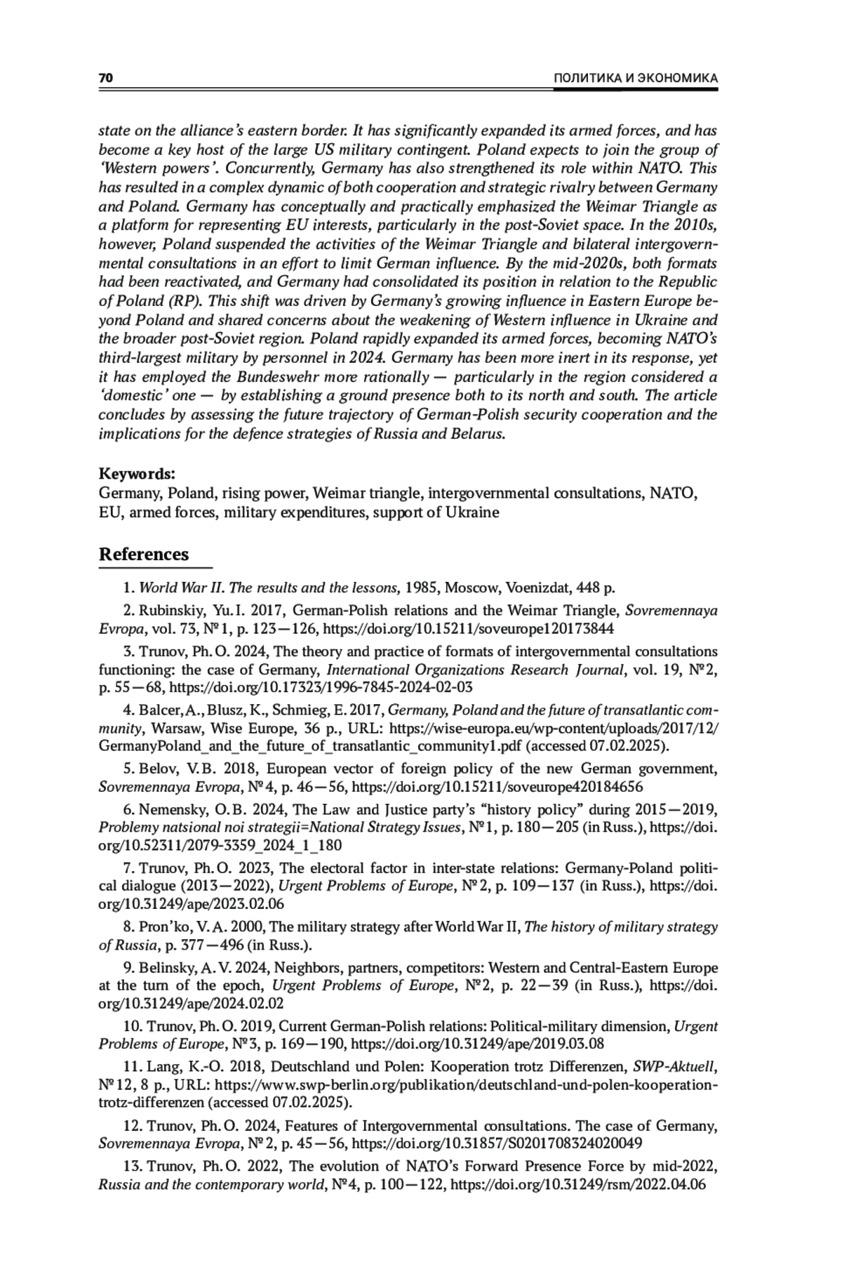 10.Трунов, Ф. О. 2019, Германо-польские отношения на современном этапе: Политико-военное измерение, Актуальные проблемы Европы, № 3, с. 169—190. EDN: JKBWSP, https://doi.org/10.31249/ape/2019.03.08