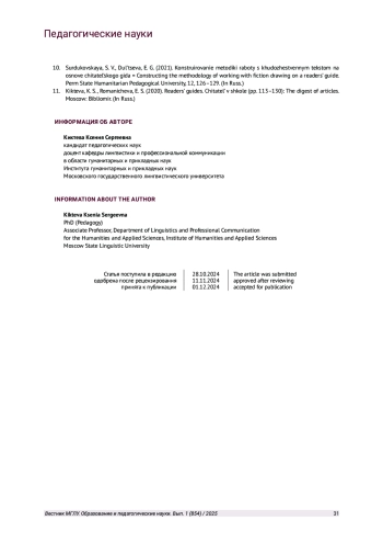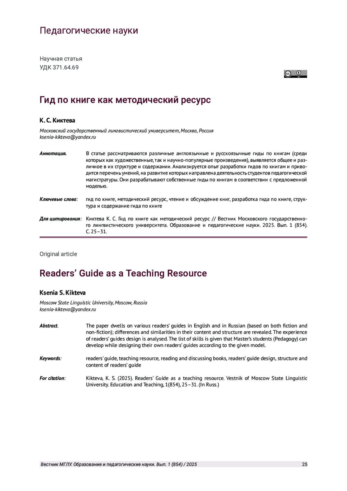 Журнал: ВЕСТНИК МОСКОВСКОГО ГОСУДАРСТВЕННОГО ЛИНГВИСТИЧЕСКОГО УНИВЕРСИТЕТА. ОБРАЗОВАНИЕ И ПЕДАГОГИЧЕСКИЕ НАУКИ