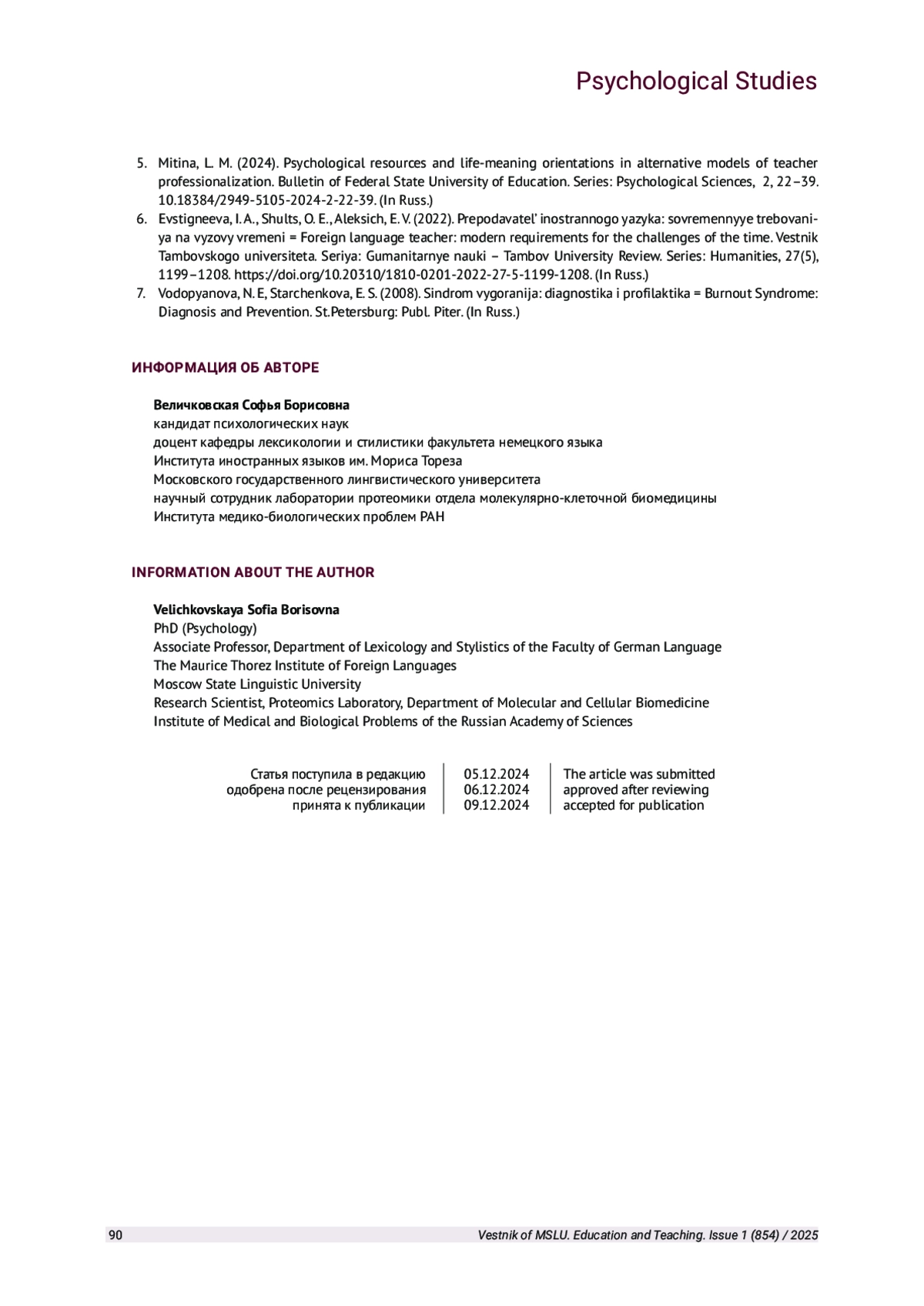 2. Митина Л. М. [и др.] Педагог в контексте личностного и профессионального развития: реальность и перспективы / Л. М. Митина, Н. А. Шайденко, З. В. Лукашеня, С. Н. Кипурова, Э. В. Онищенко. М.: Психологический институт Российской академии образования, 2022. EDN: TNBKOJ