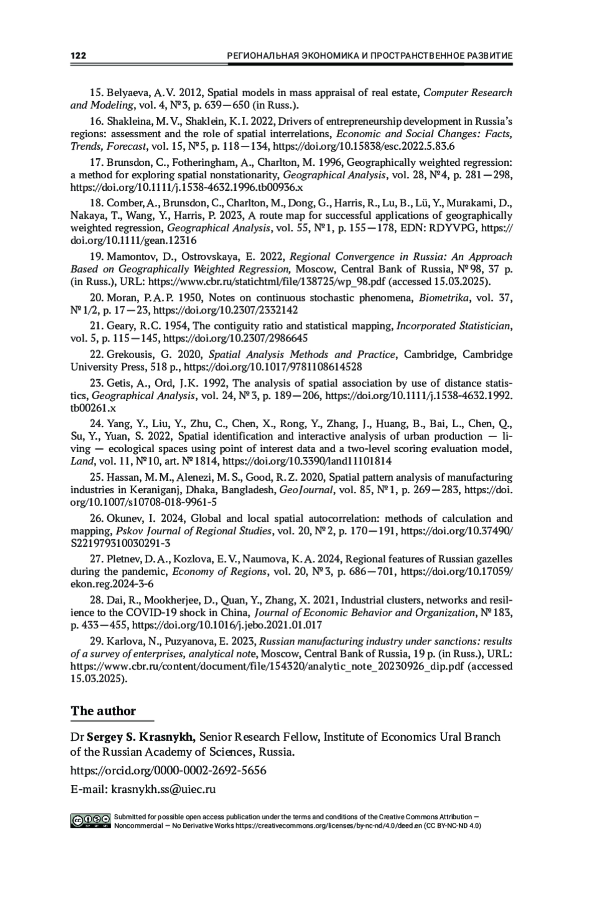 19. Мамонтов, Д., Островская, Е. 2022, Региональная конвергенция в России: подход на основе географически взвешенной регрессии, Москва, Центральный банк России, No 98, 37 с.,URL: https://www.cbr.ru/statichtml/file/138725/wp_98.pdf (дата обращения: 15.03.2025).