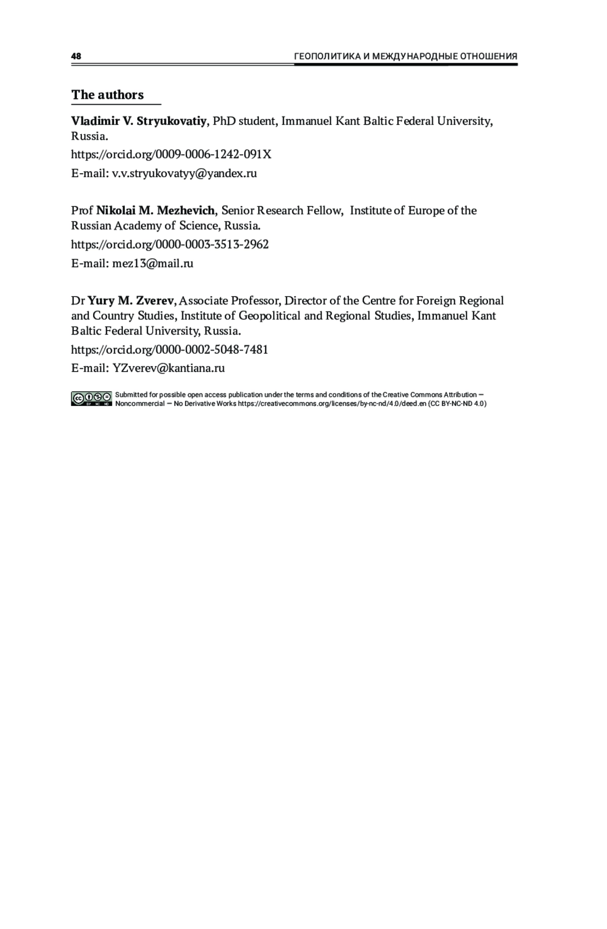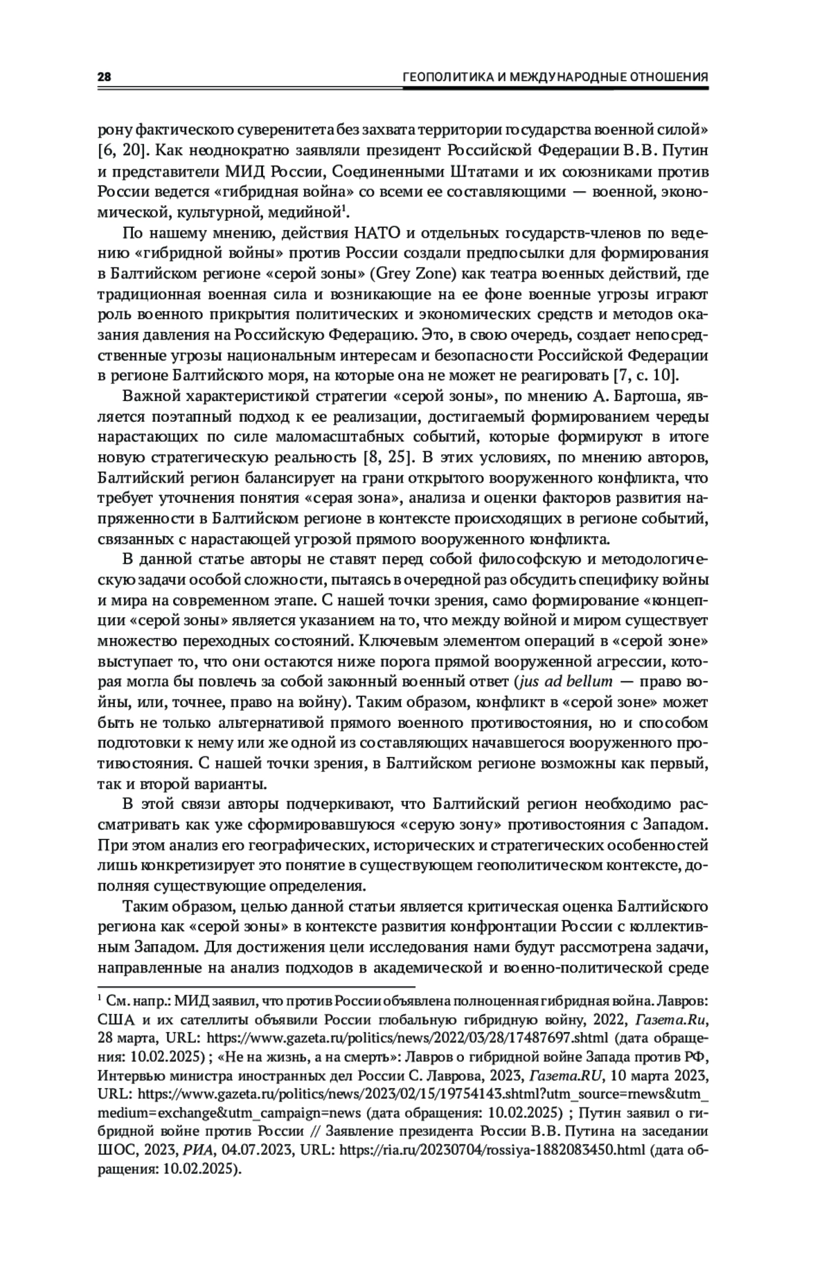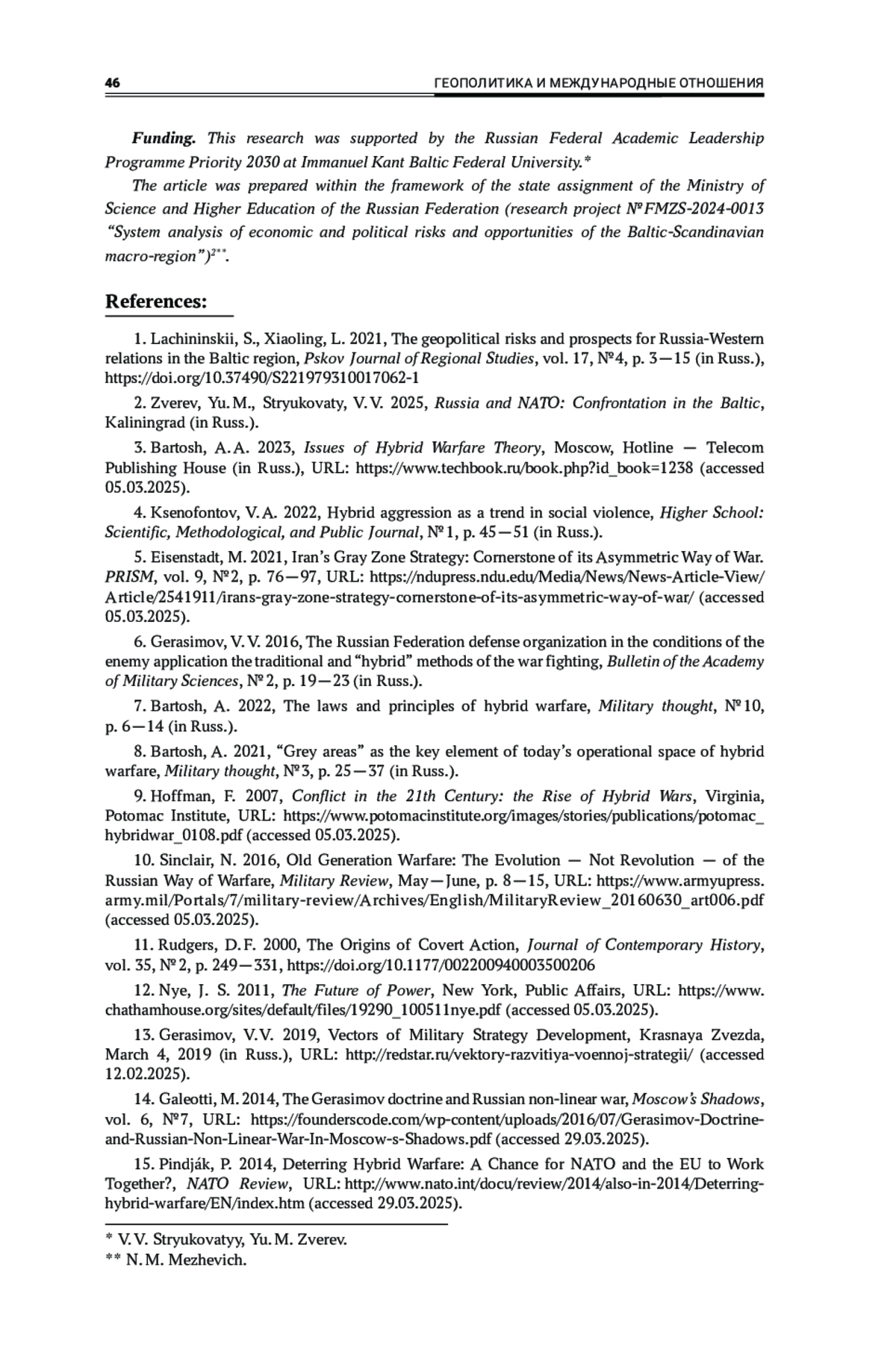 СТРЮКОВАТЫЙ В. В., МЕЖЕВИЧ Н. М., ЗВЕРЕВ Ю. М. БАЛТИЙСКИЙ РЕГИОН КАК «СЕРАЯ ЗОНА»: БАЛАНСИРОВАНИЕ НА ГРАНИ ВООРУЖЕННОГО КОНФЛИКТА // БАЛТИЙСКИЙ РЕГИОН. 2025. Т. 17, № 4