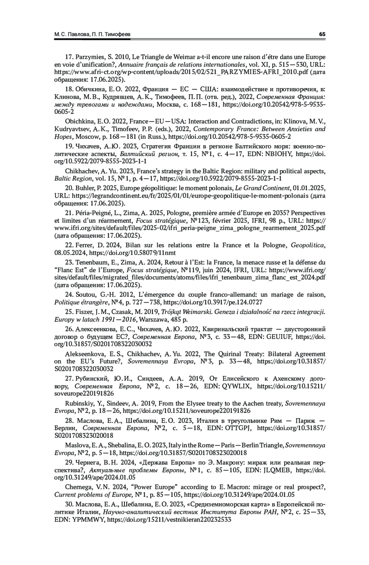 Parzymies, S. 2010, Le Triangle de Weimar a-t-il encore une raison d’étre dans une Europe en voie d’unification?, Annuaire français de relations internationales, vol. XI, p. 515—530, URL: https://www.afri-ct.org/wp-content/uploads/2015/02/521_PARZYMIES-AFRI_2010.pdf (дата обращения: 17.06.2025).