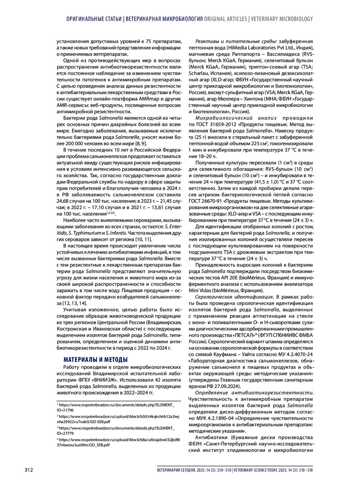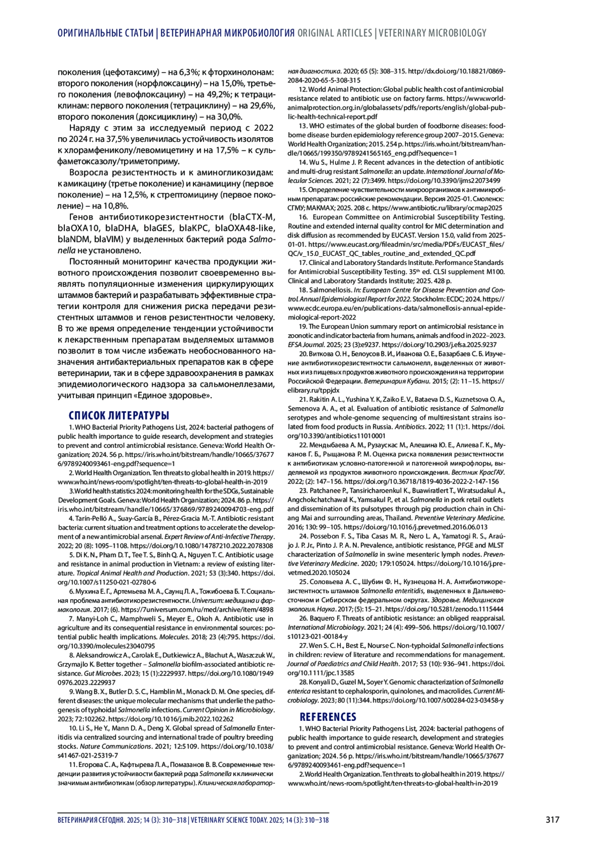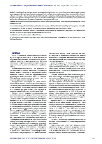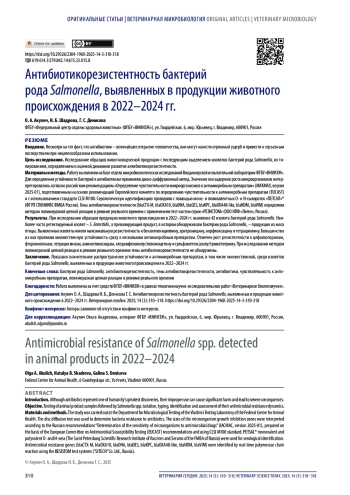 Статья: Антибиотикорезистентность бактерий рода Salmonella, выявленных в продукции животного происхождения в 2022–2024 гг. (2025)