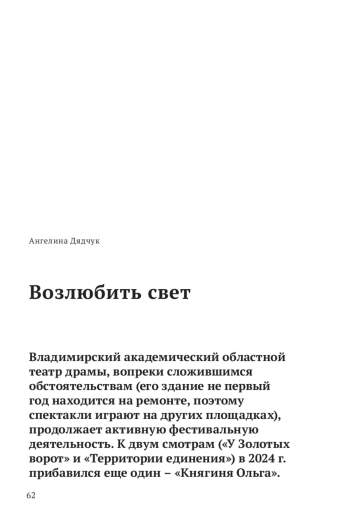ДЯДЧУК А. ВОЗЛЮБИТЬ СВЕТ // ВОПРОСЫ ТЕАТРА. 2024. № 3-4