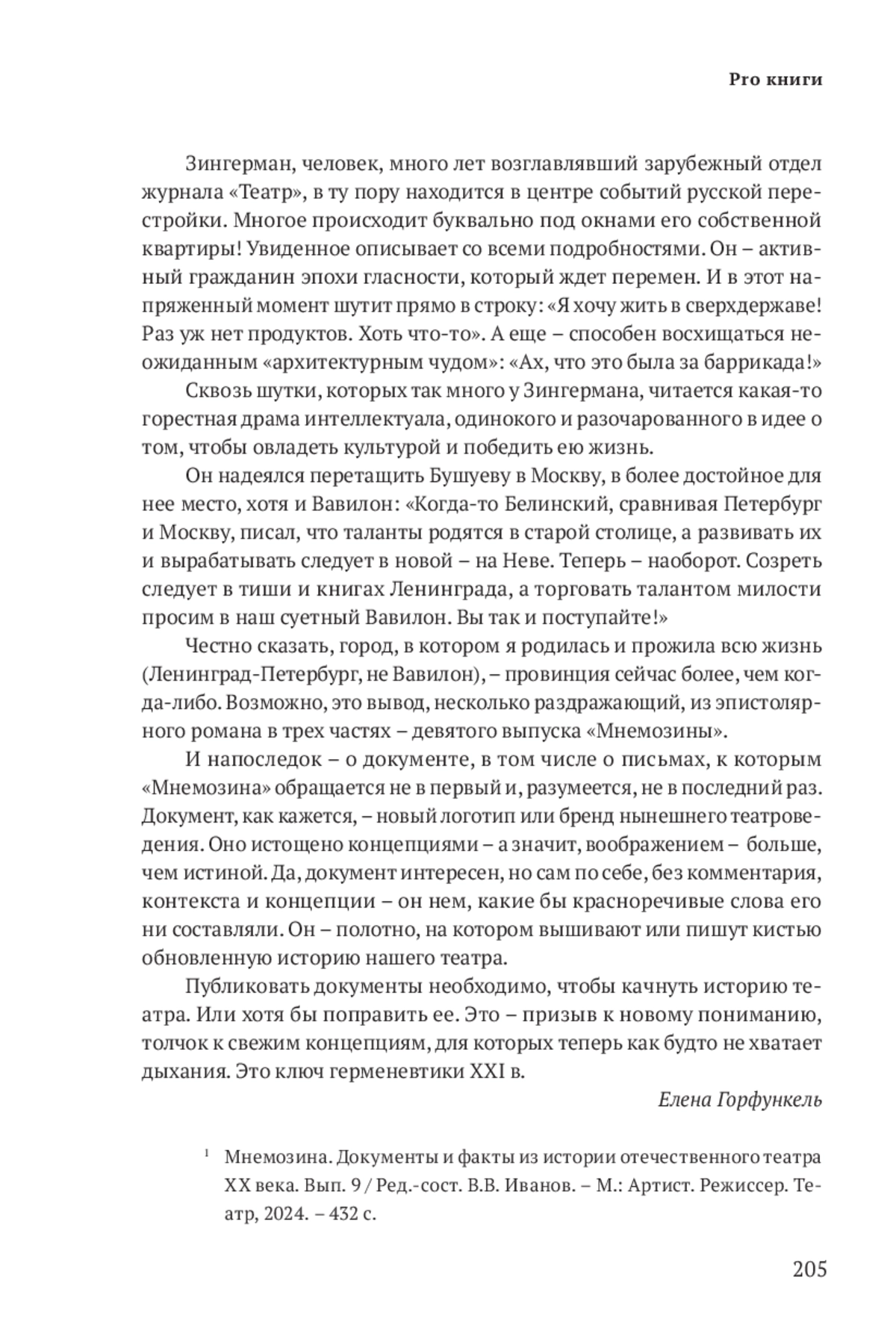 1. Мнемозина. Документы и факты из истории отечественного театра XX века. Вып. 9 / Ред.-сост. В.В. Иванов. - М.: Артист. Режиссер. Театр, 2024. - 432 с.