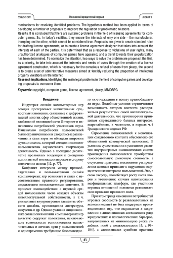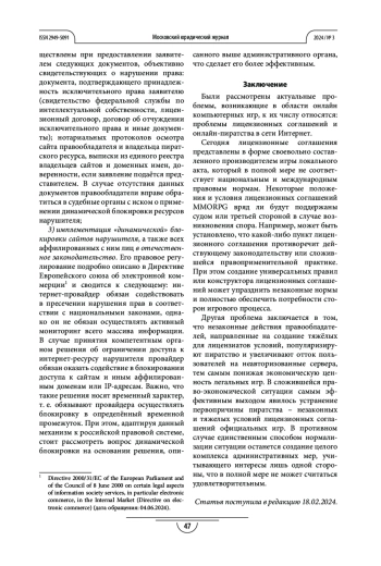 Статья: Проблемы лицензионных соглашений и онлайн-пиратства в области онлайн компьютерных игр (2024)