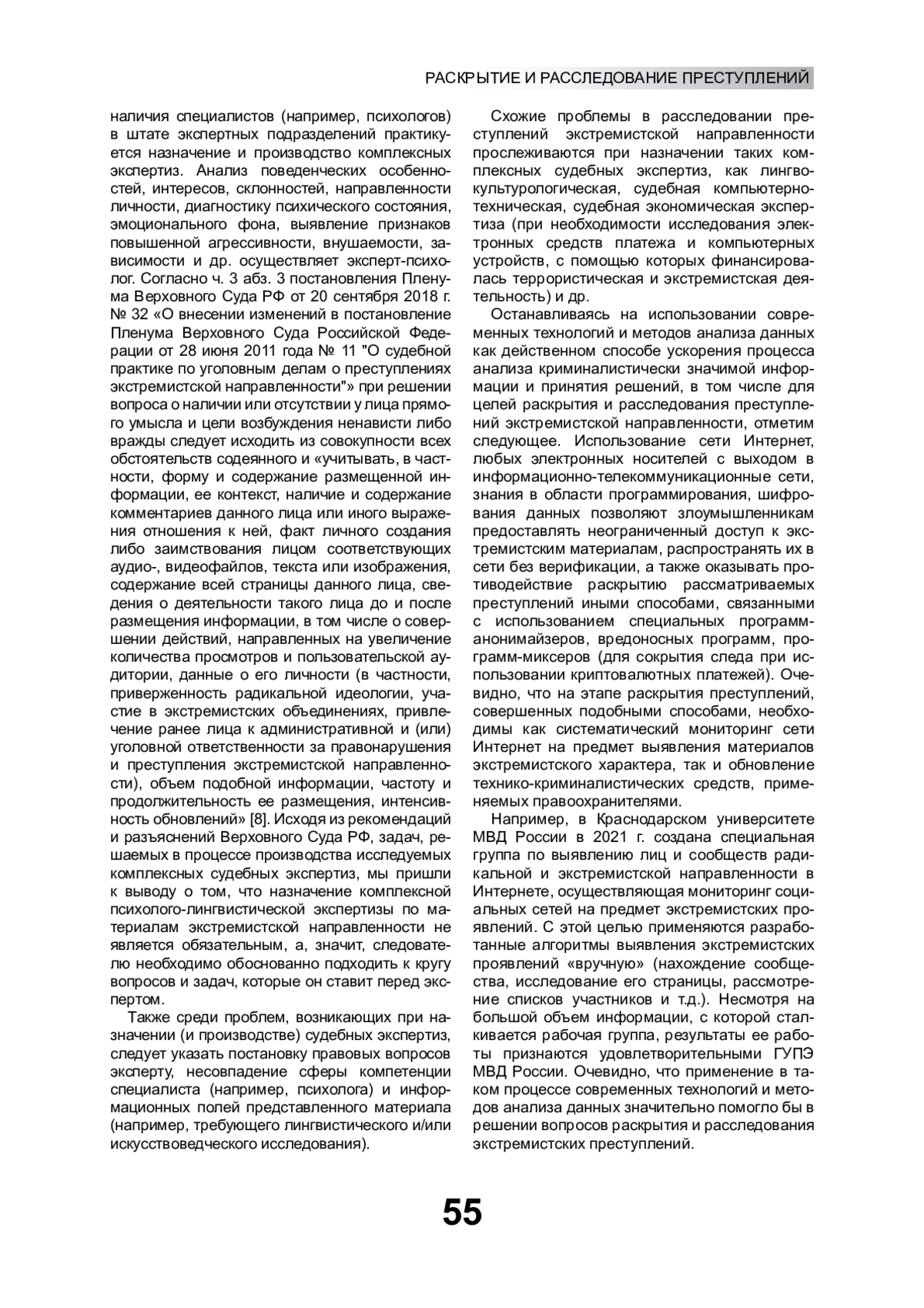 10. Баранов В.В. Некоторые проблемы расследования и противодействия расследованию экстремистских преступлений, совершаемых с использованием сферы телекоммуникаций и компьютерной информации // Труды Академии управления МВД России. 2022. № 1(61). С. 70-80. EDN: ZBPKBG